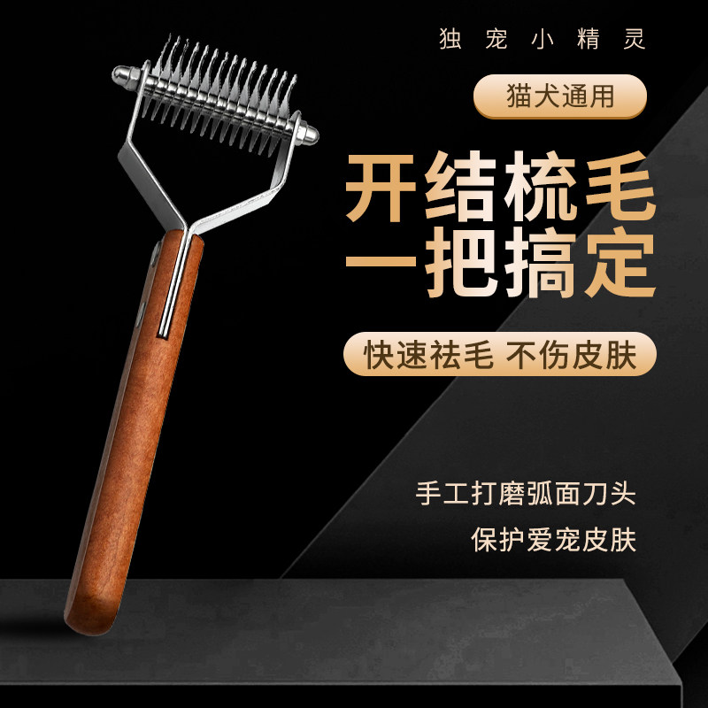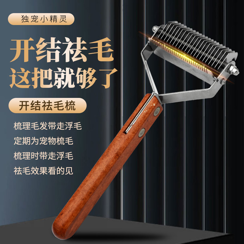 📚 独宠小精灵开结梳狗梳子刀片木柄开结刀猫梳子泰迪祛毛梳