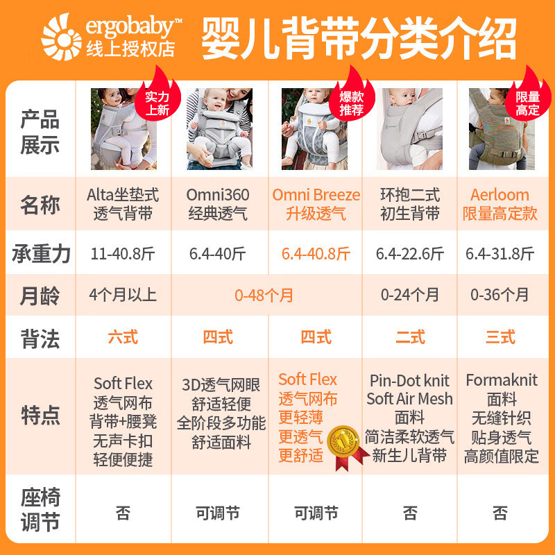 📚 美国ergobaby二狗婴儿背带omni360透气breeze宝宝背袋托抱娃神器