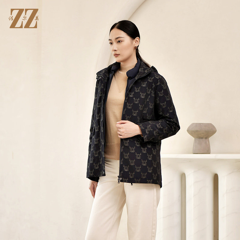 📚 佐尔美冬季新款 经典防风印花两件套松紧腰羽绒服女E24YY11