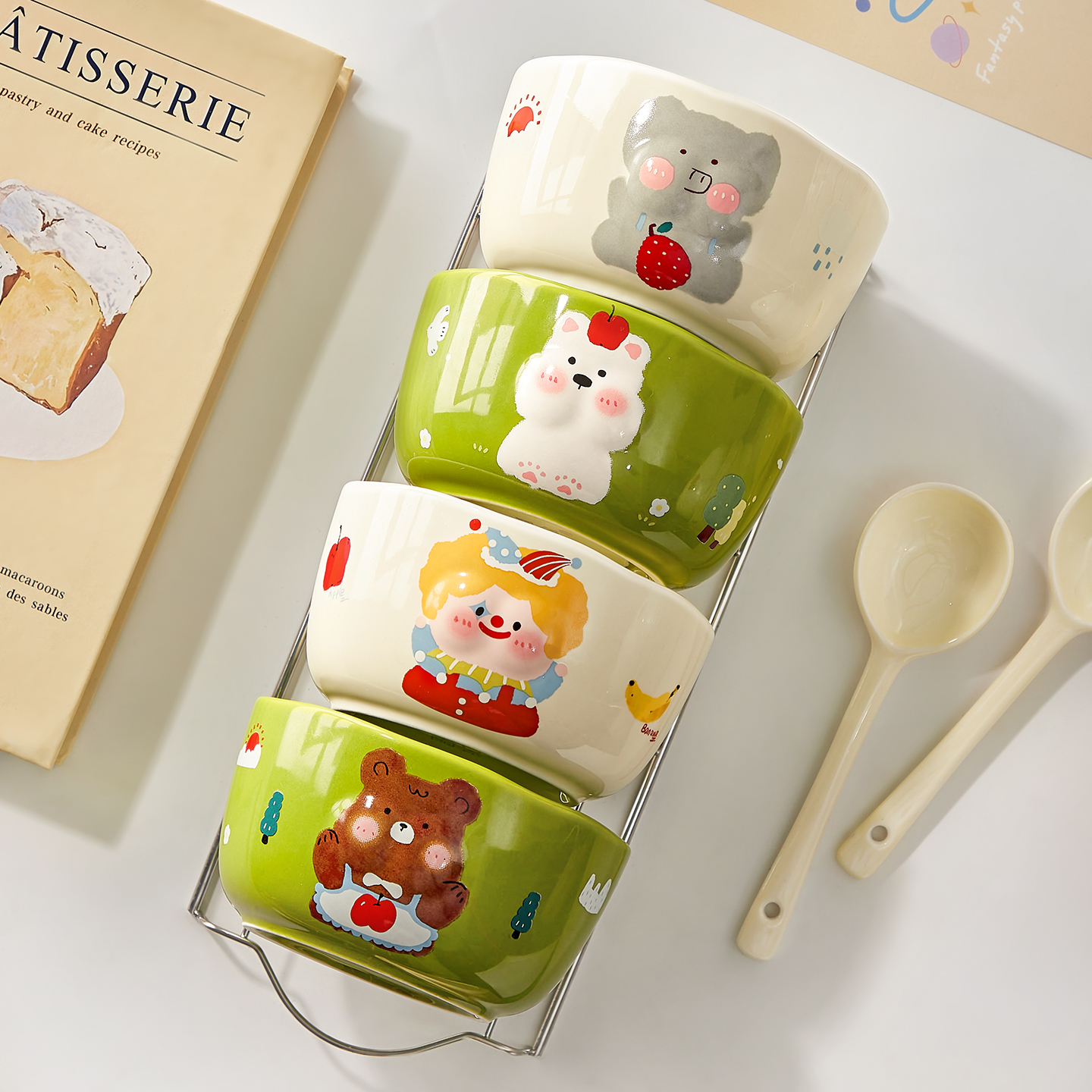 📚 墨色陶瓷饭碗家用2026新款高颜值儿童吃饭碗可爱餐具个人专用碗具