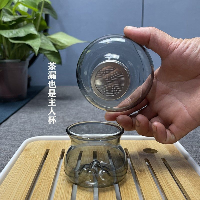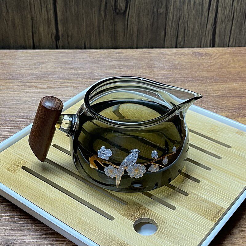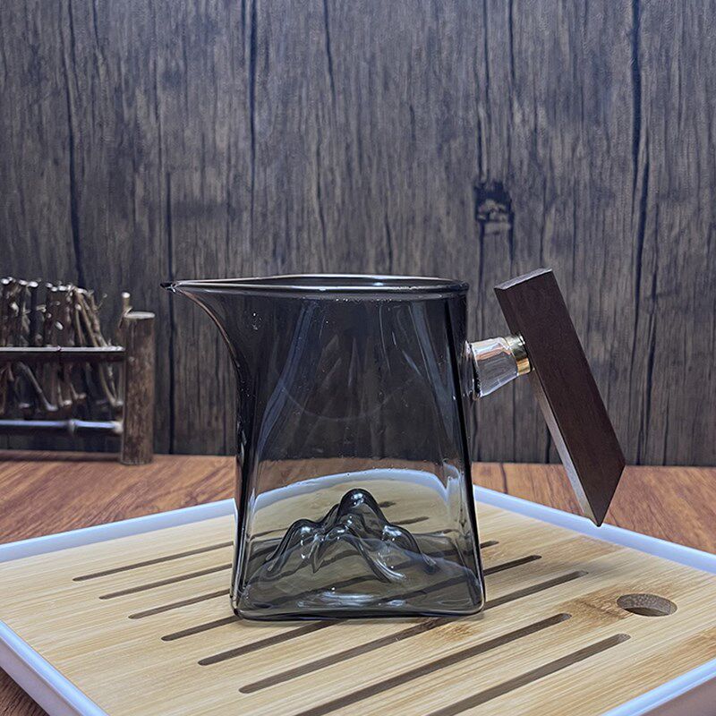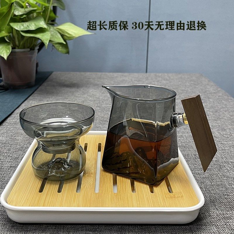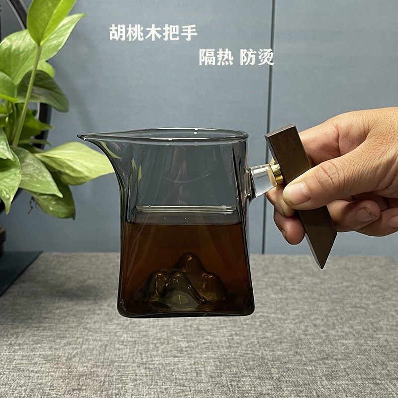 📚 日式公道杯观山加厚玻璃木柄方形茶海带茶漏带把手分茶器茶滤套装