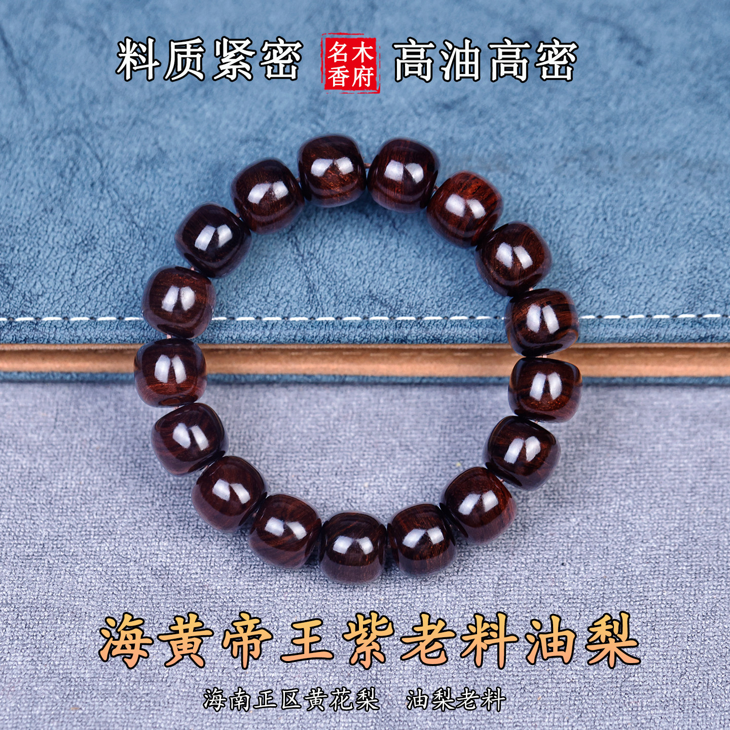 📚 正宗海南黄花梨老料帝王紫油梨手串121314老型珠桶珠水波纹虎皮纹