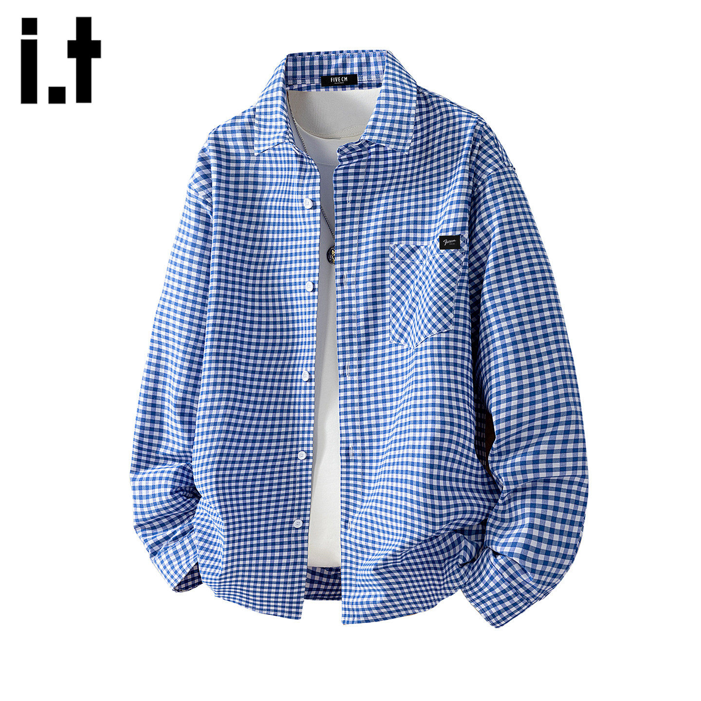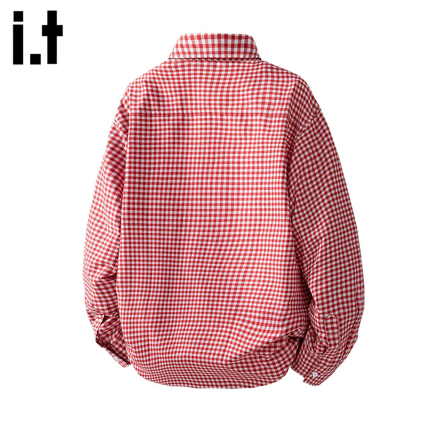 📚 it :5cm/FIVECM红色格子翻领长袖衬衫男2026春季宽松休闲通勤衬衣