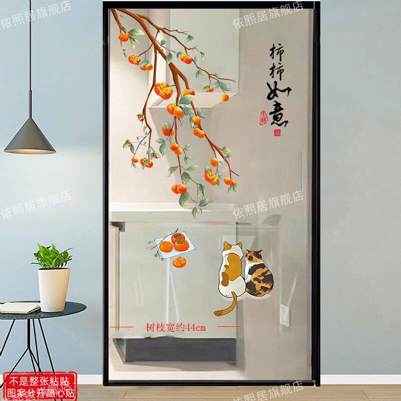📚 厨房玻璃门装饰贴纸单门防撞贴防水自粘贴画乔迁装饰墙贴透明门贴