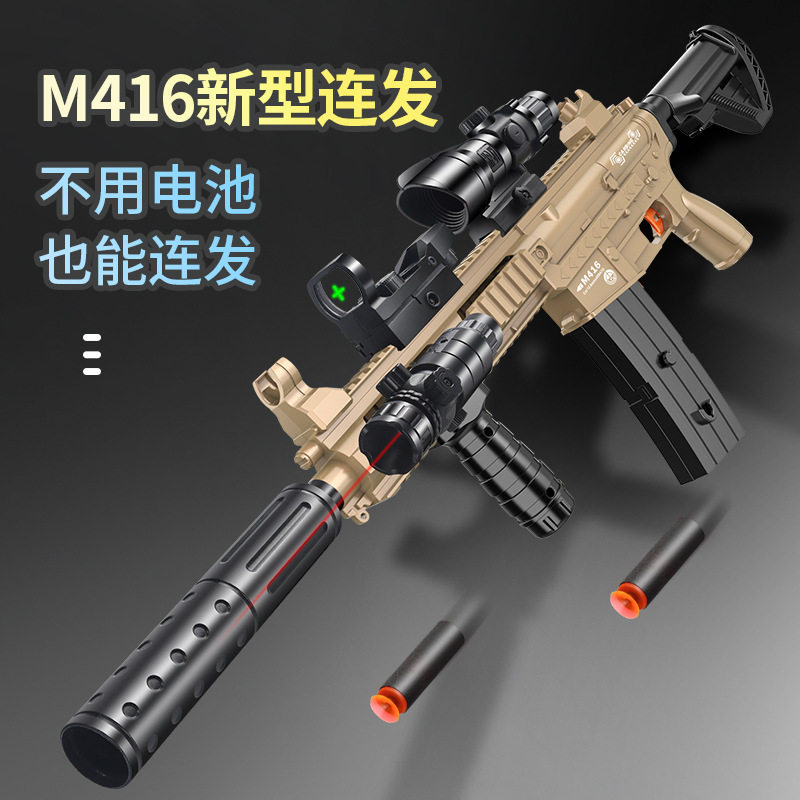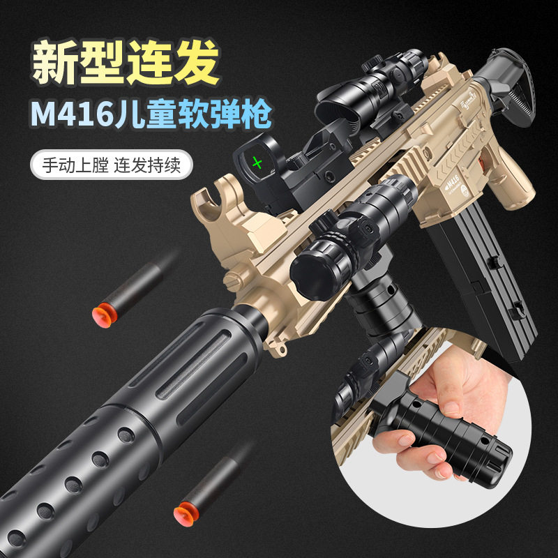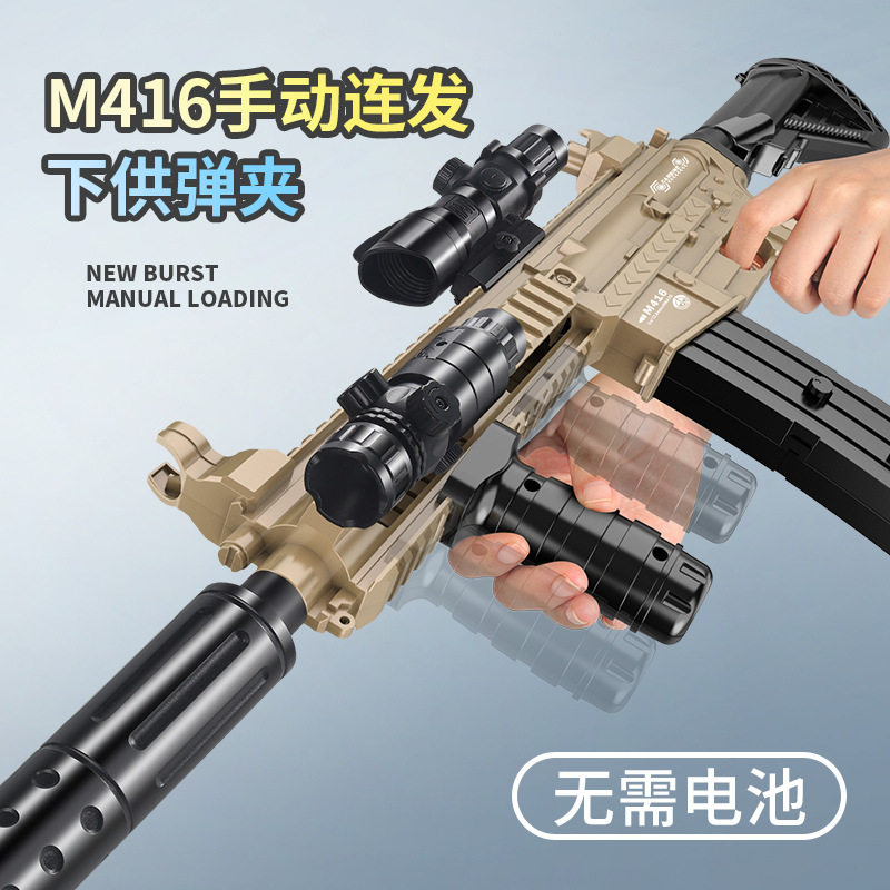 📚 手动握把上膛m416软弹枪下供弹无需电池手动可连发儿童玩具枪