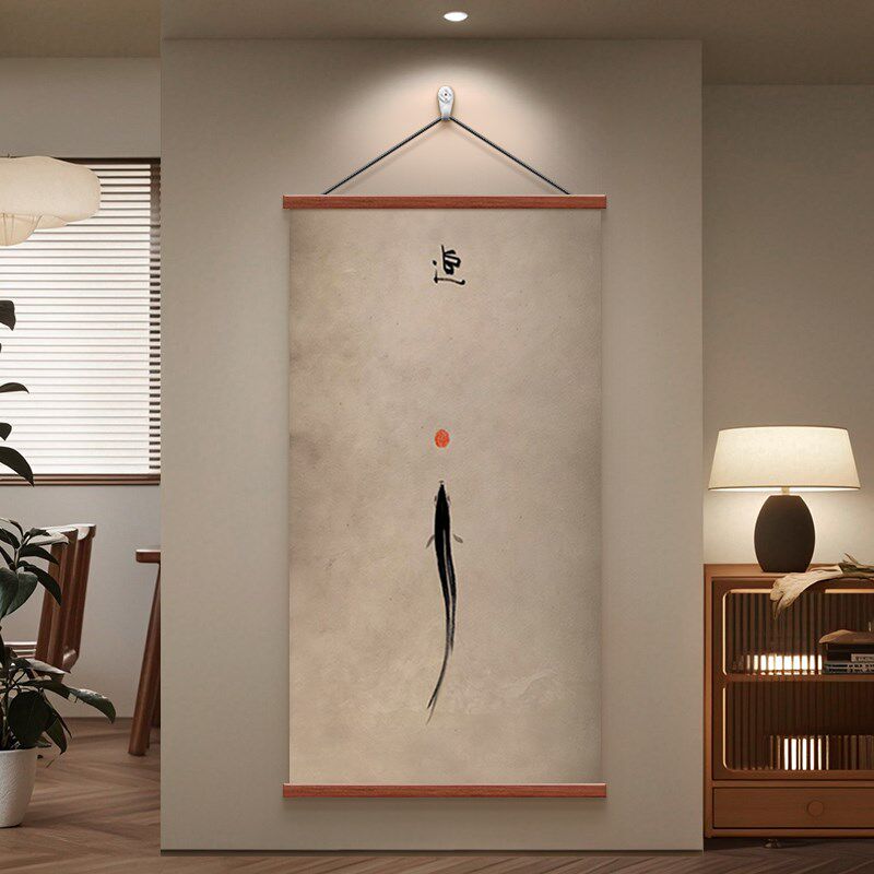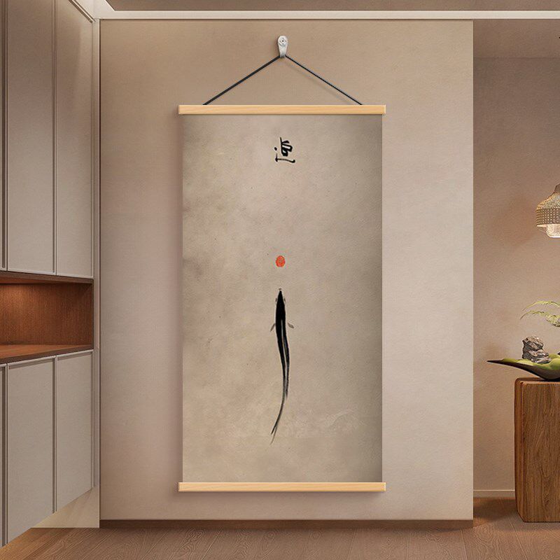 📚 宋式美学新中式走廊玄关装饰画水墨黑白鱼茶室书房办公室卷轴挂画