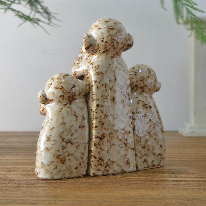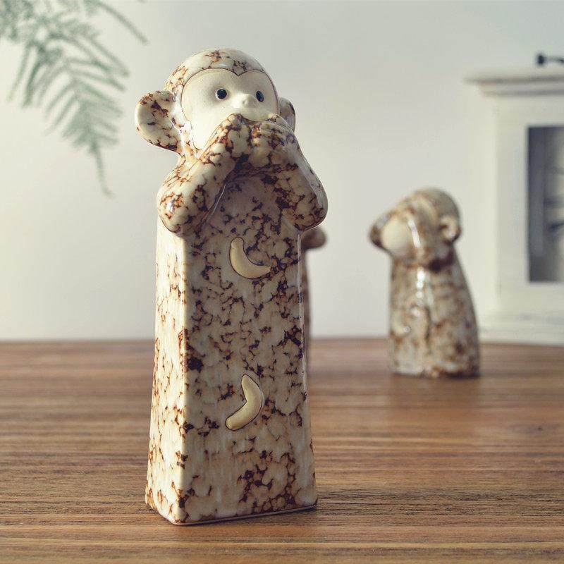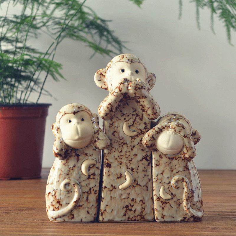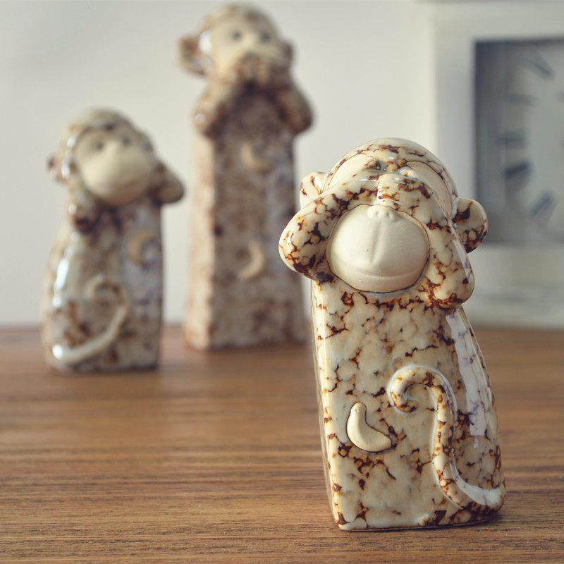 📚 创意陶瓷不听不看不说三不猴可爱家居客厅电视柜办公室工艺品摆件