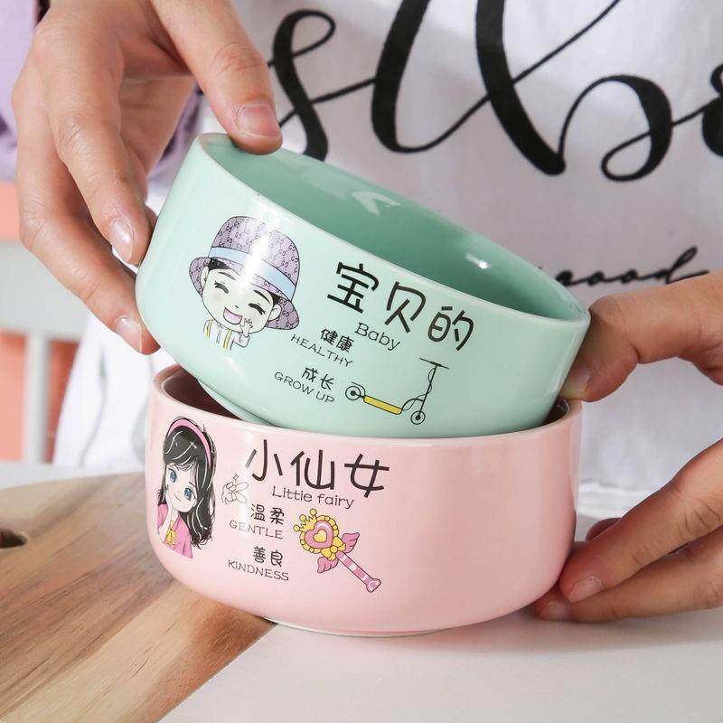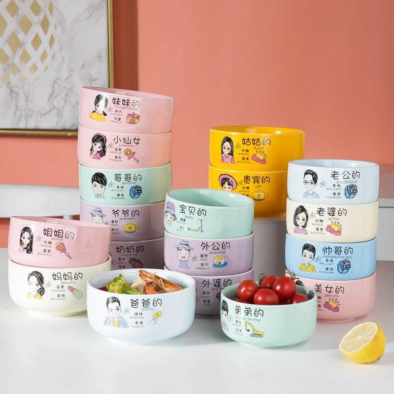📚 亲子碗陶瓷吃饭碗筷餐具碗碟盘套装可爱一家四口家庭区分专人专用