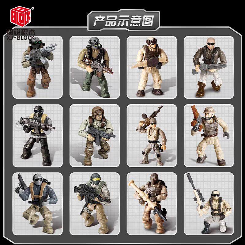 📚 军事积木系列人仔模型玩具小兵人摆件空军空降兵特种特警益智拼装