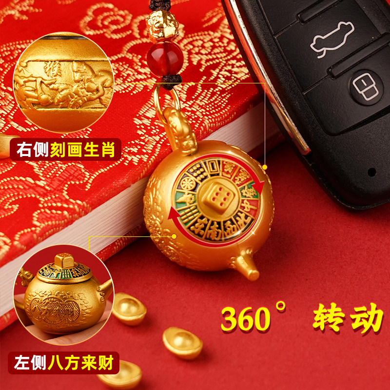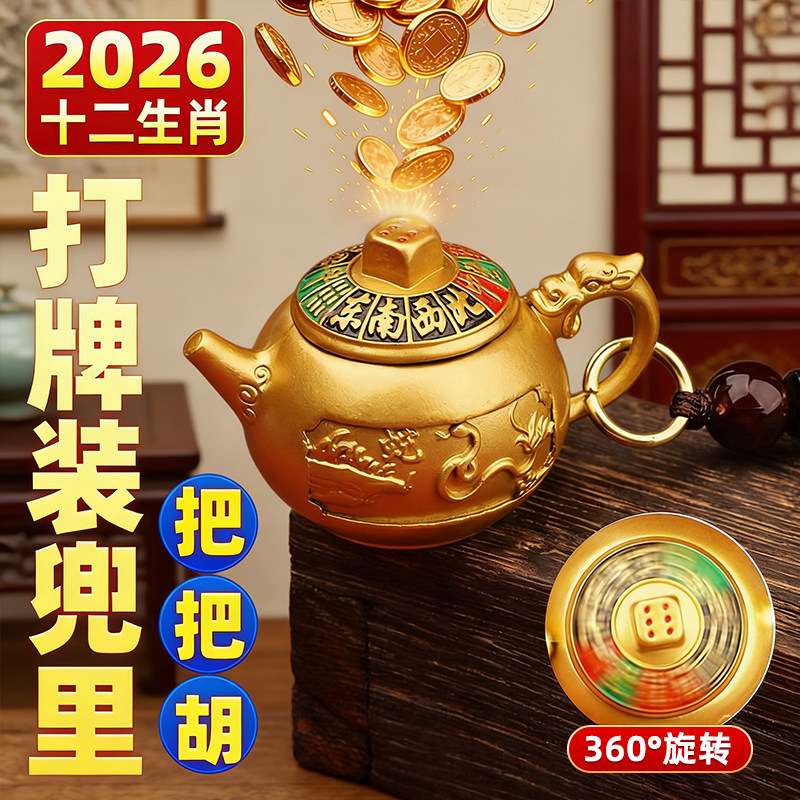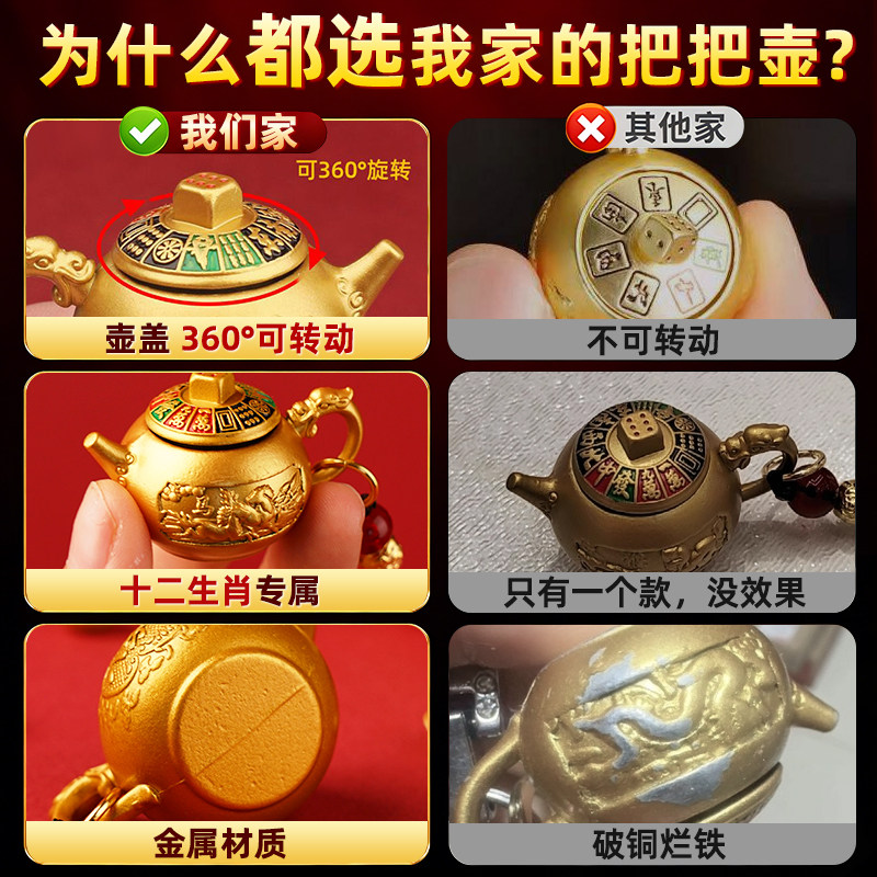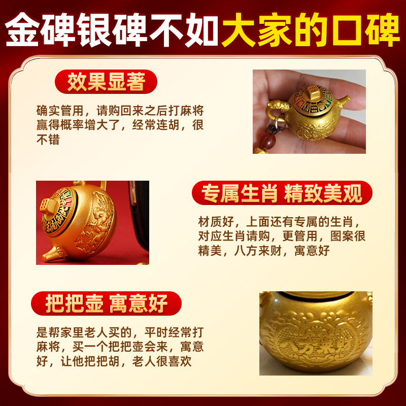 📚 把把胡手把件打麻将可转财马上胡打牌迷你纯黄铜壶钥匙扣挂件摆件