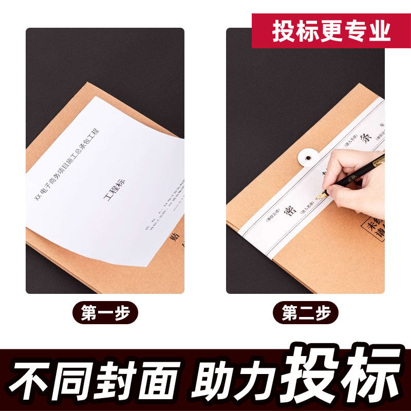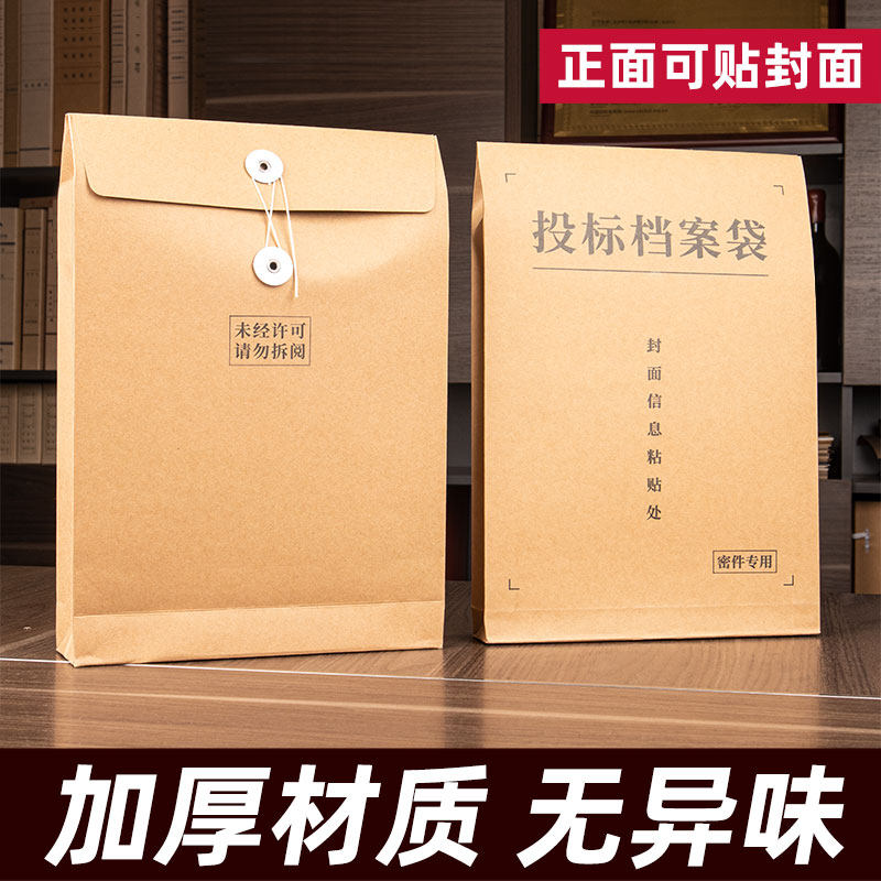📚 33415投标档案袋A4牛皮纸加厚文件袋20/100纸质投标专用资料袋加大容量文件袋文件夹招标用办公用袋子