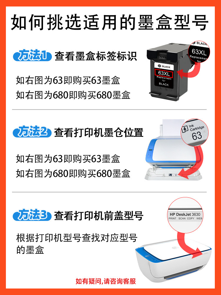 📚 适用惠普3630打印机墨盒HP63xl 680 3632 3636 3638 DeskJet 原装