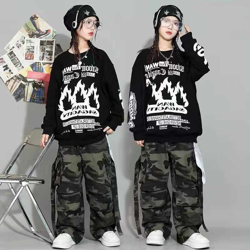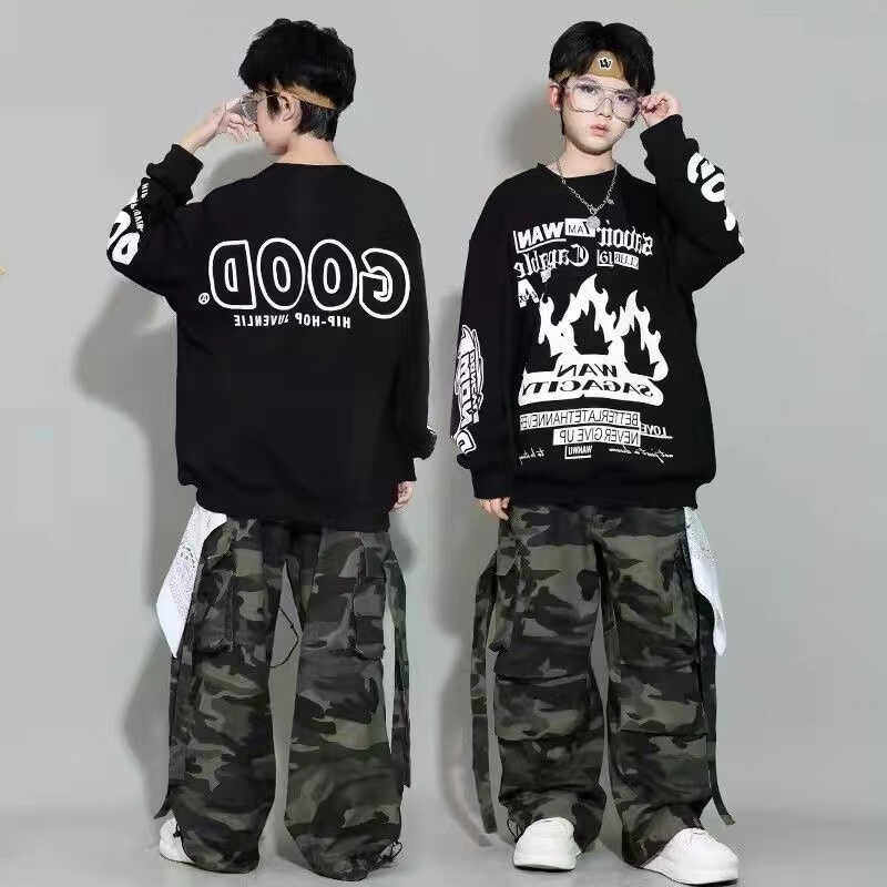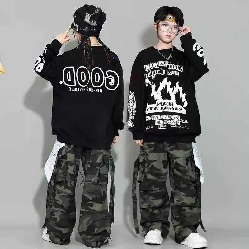 📚 儿童街舞潮服套装冬hiphop嘻哈长袖卫衣女童爵士舞男童元旦演出服