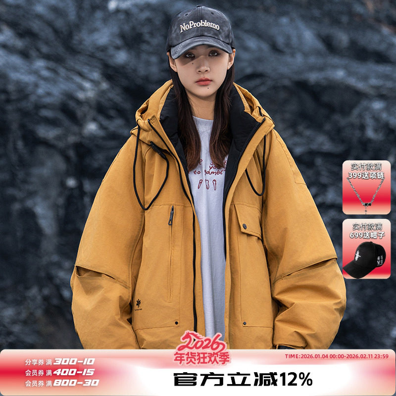 📚 AOGZ白鸭绒机能工装连帽羽绒服男女冬季2025新款潮牌纯色冲锋外套