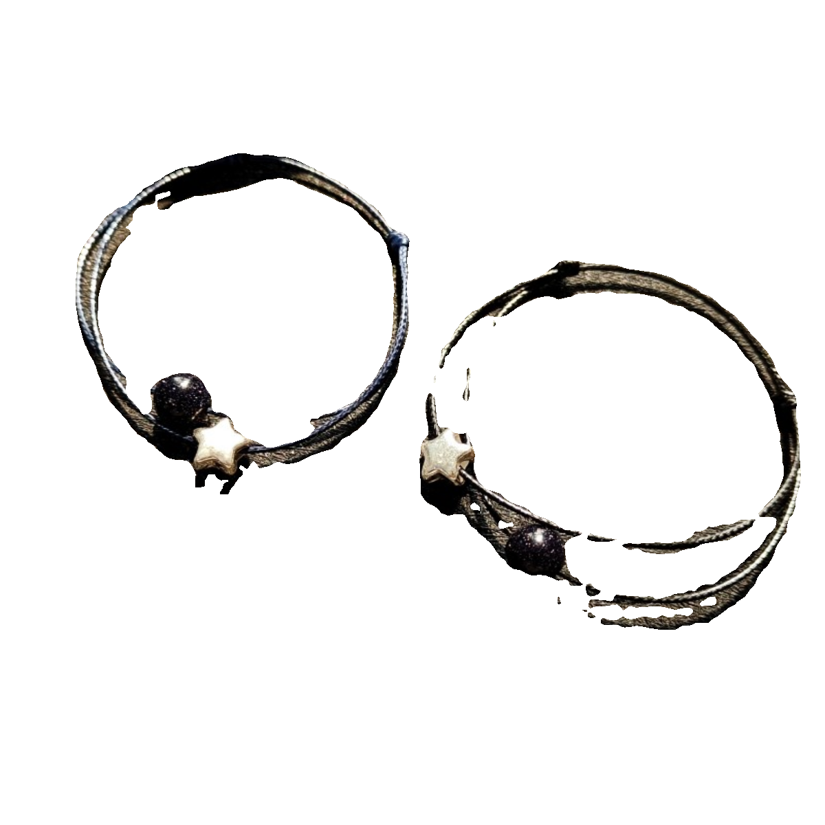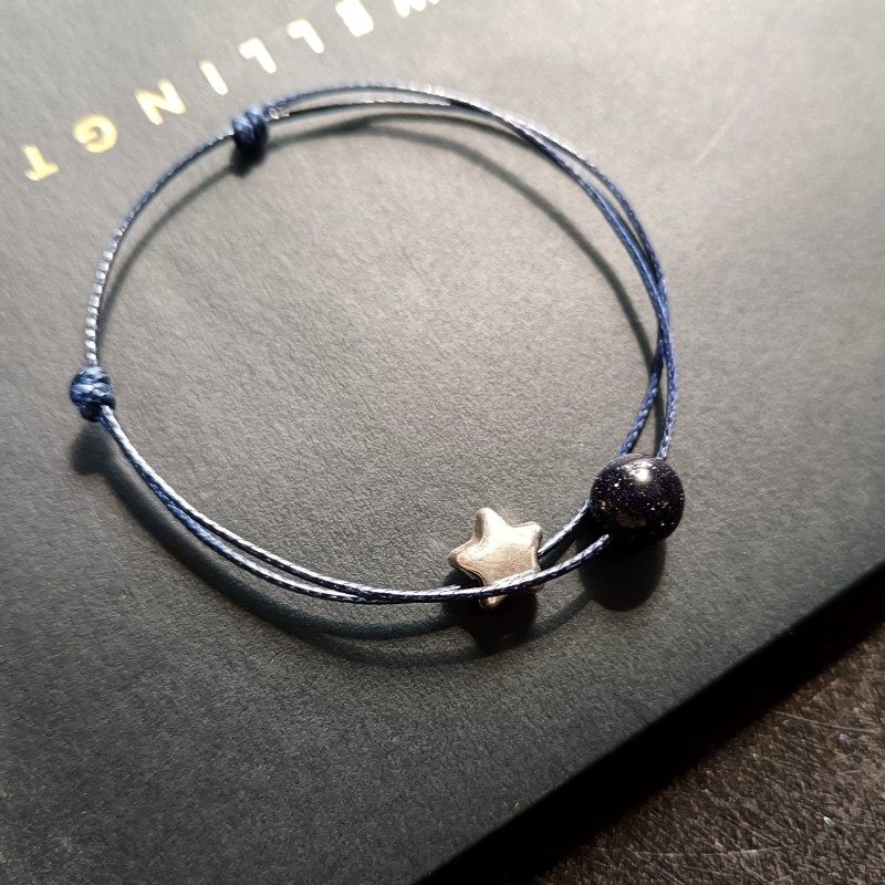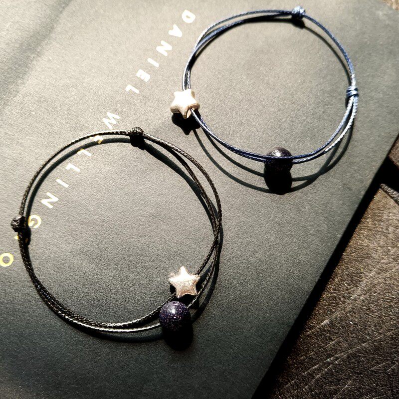 📚 星穹 原宿星空925银星日韩简约百搭男女蓝砂石墨蓝黑蜡绳编织手绳