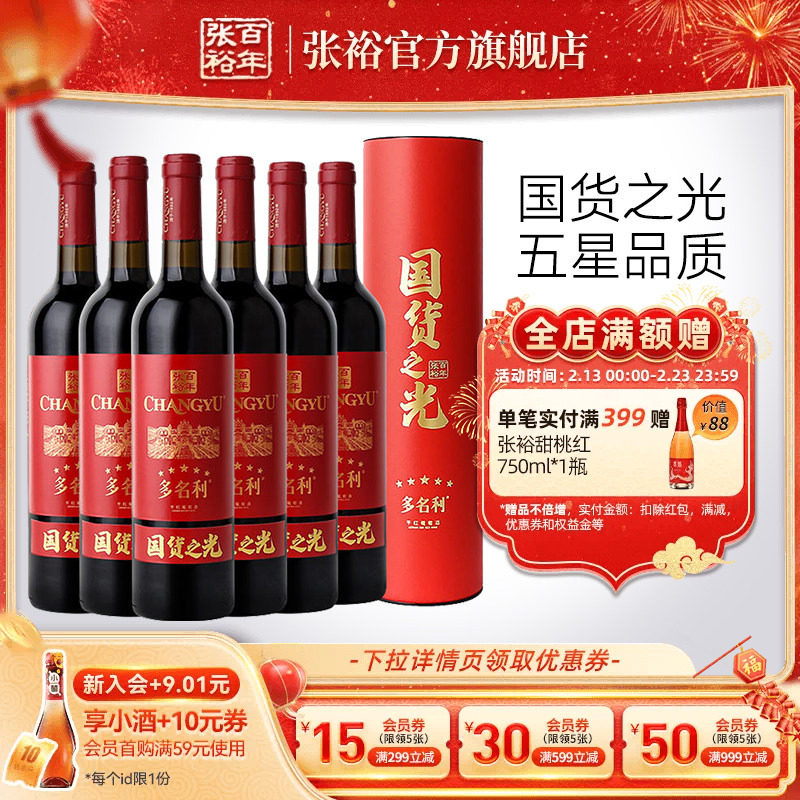 📚 【张裕官方】五星干红赤霞珠葡萄酒圆筒整箱6瓶百年国货之光特选