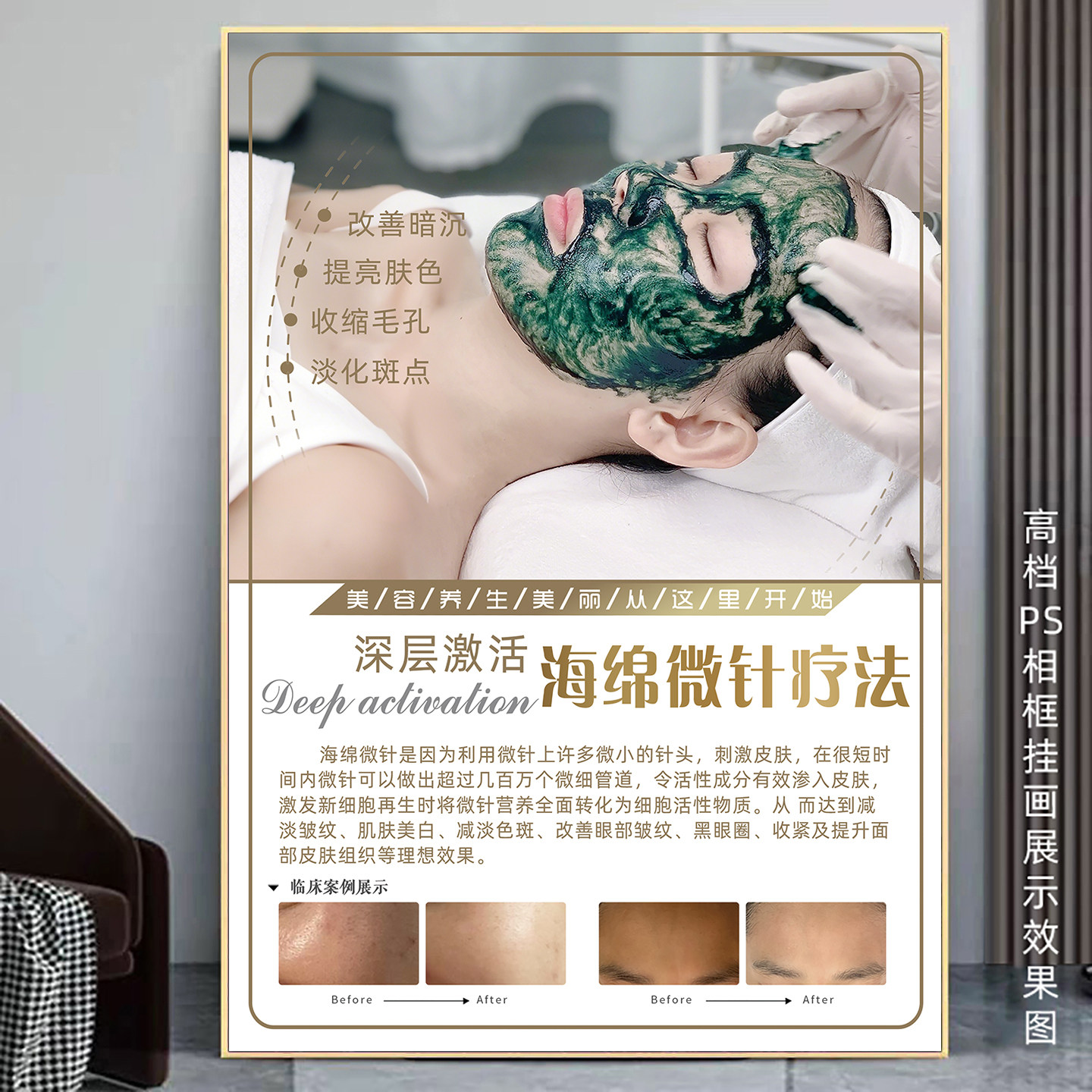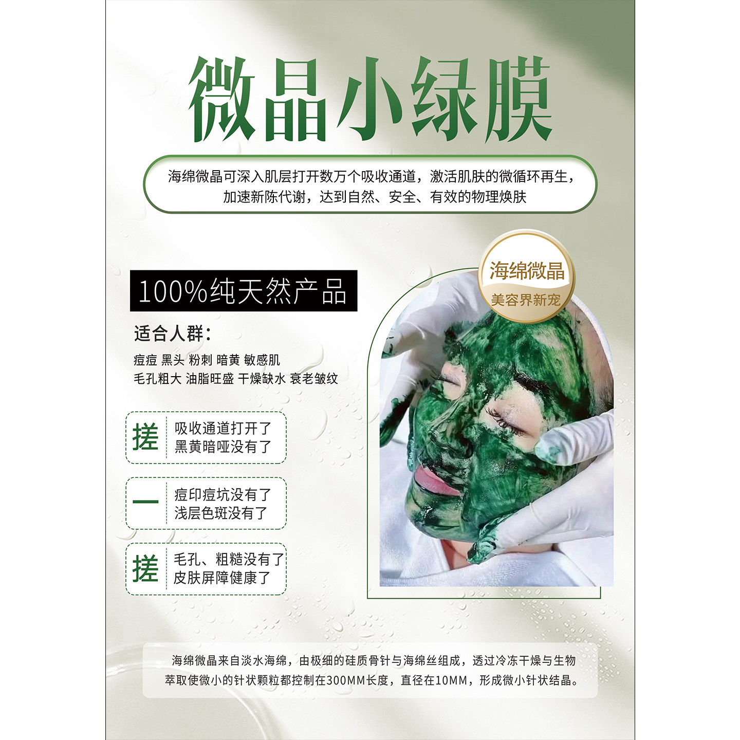 📚 海绵微针海报海藻微针宣传画祛痘图片绿藻骨针焕肤挂画小绿膜广告