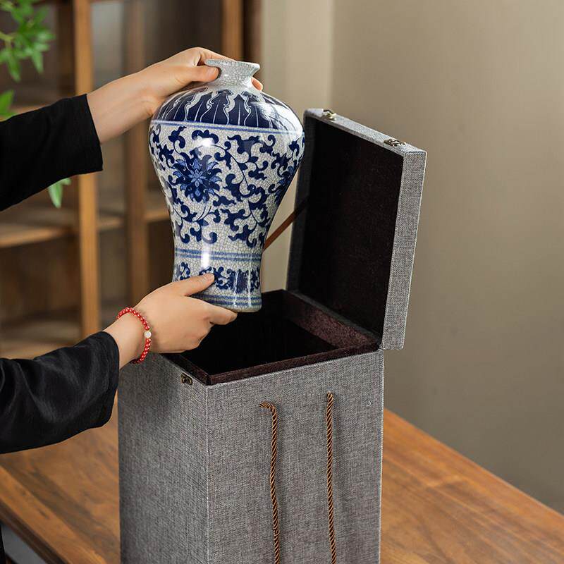 📚 花瓶玉器摆件锦盒长方形麻布礼盒空盒中国风锦盒包装盒礼盒定做