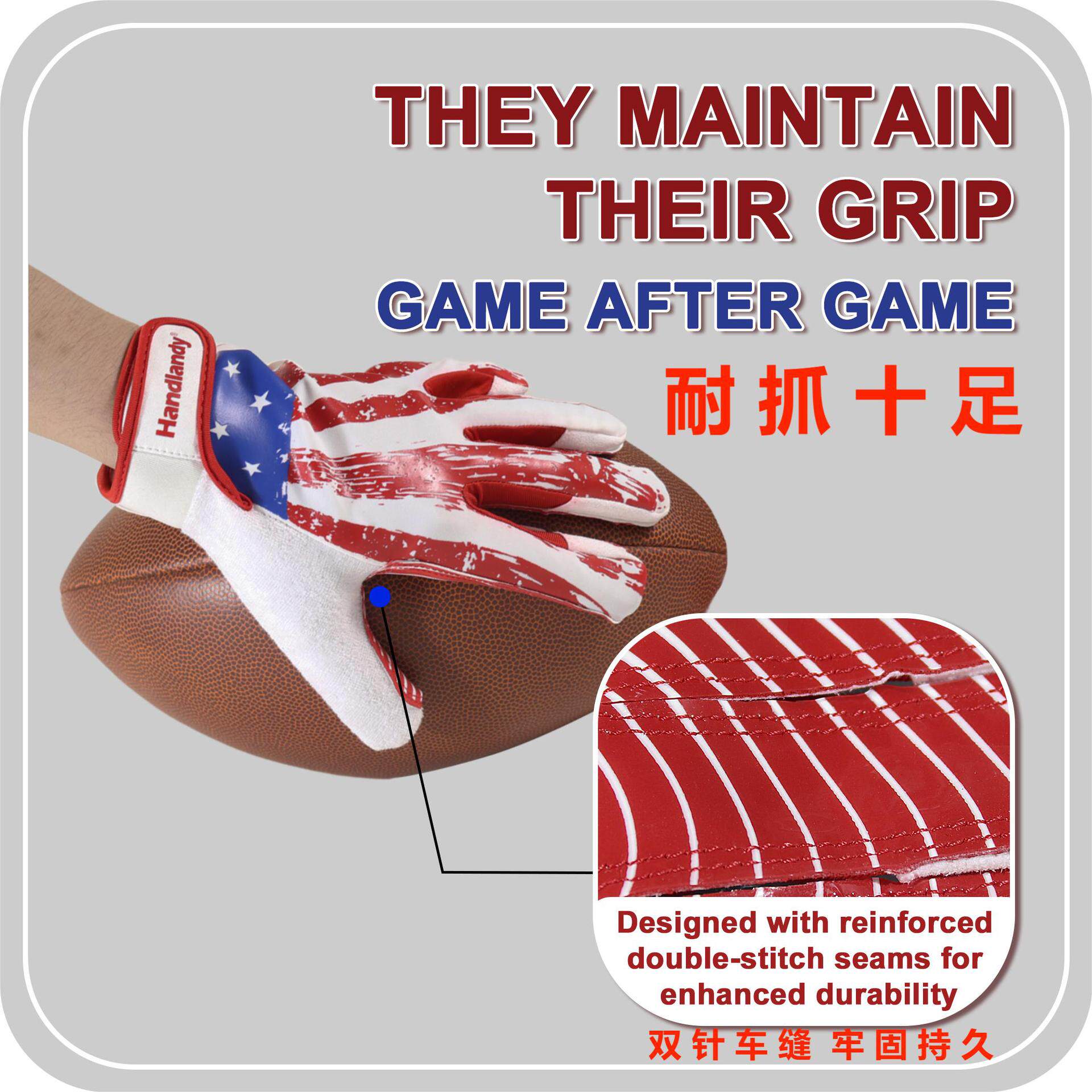 📚 HANDLANDY瀚德澜迪新款童装超纤硅胶防滑手掌美式足球橄榄球手套