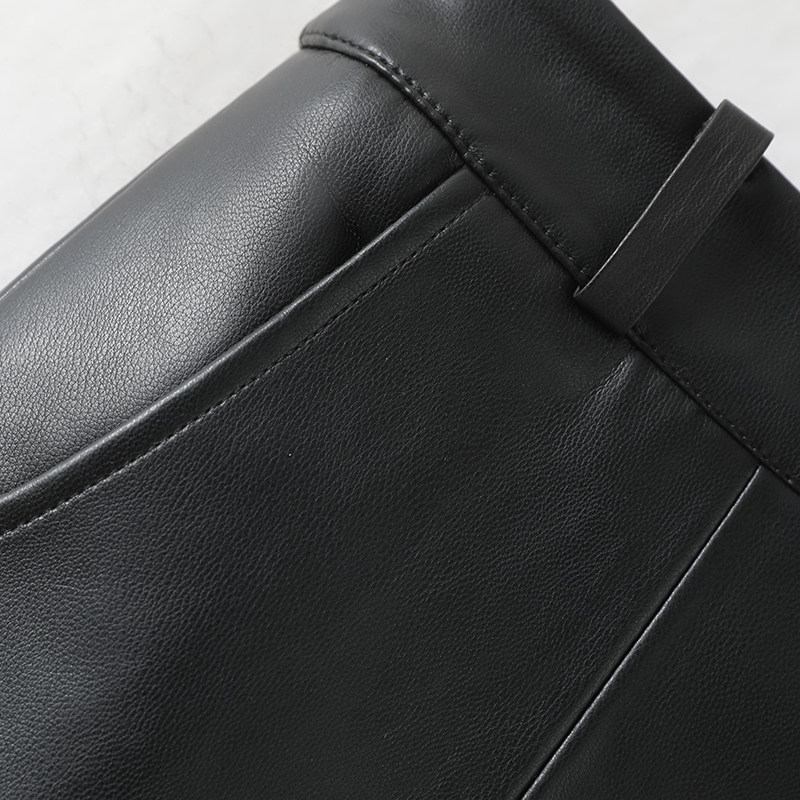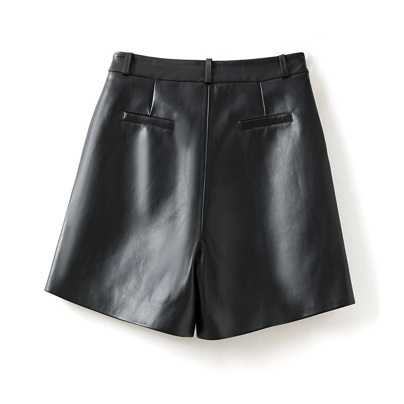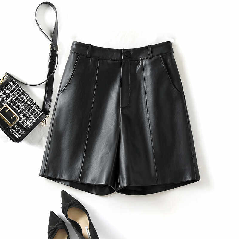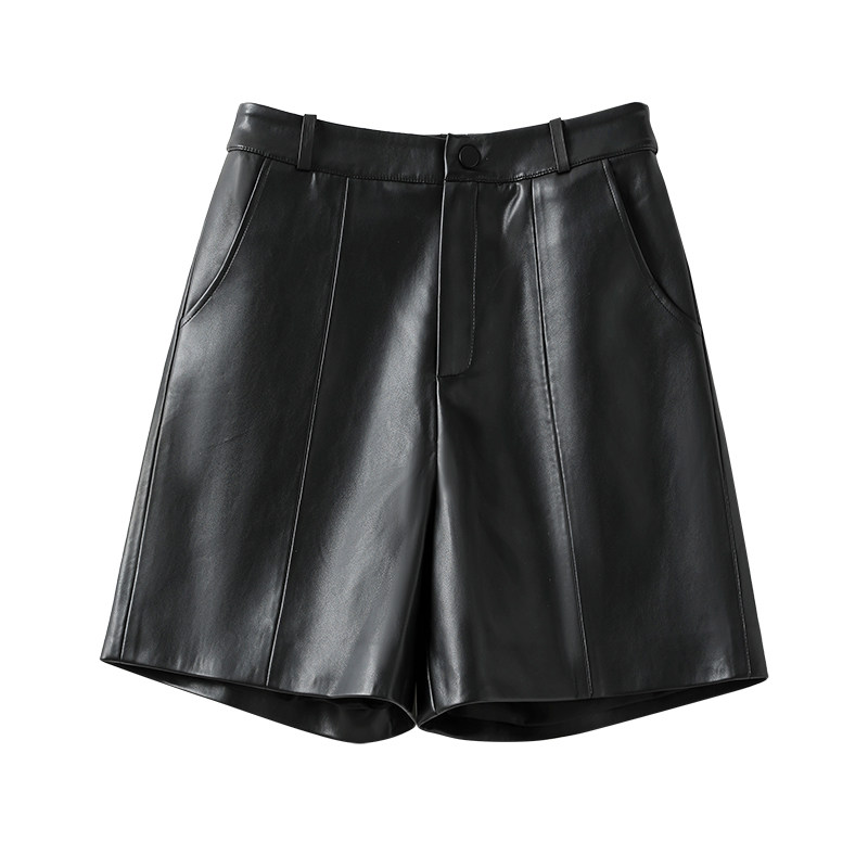 📚 海宁真皮短裤女高腰绵羊皮宽松五分阔腿裤气质百搭休闲a字皮靴裤