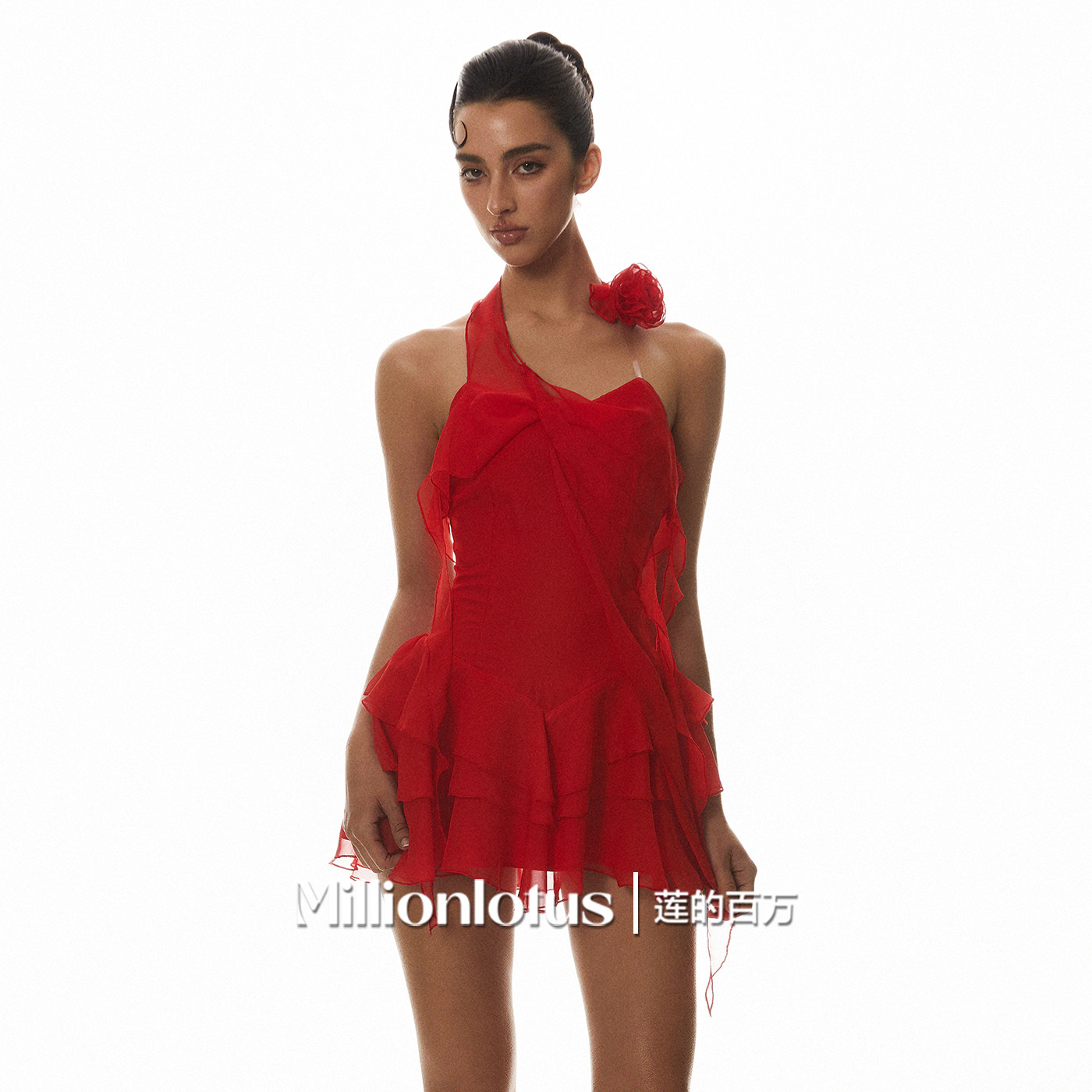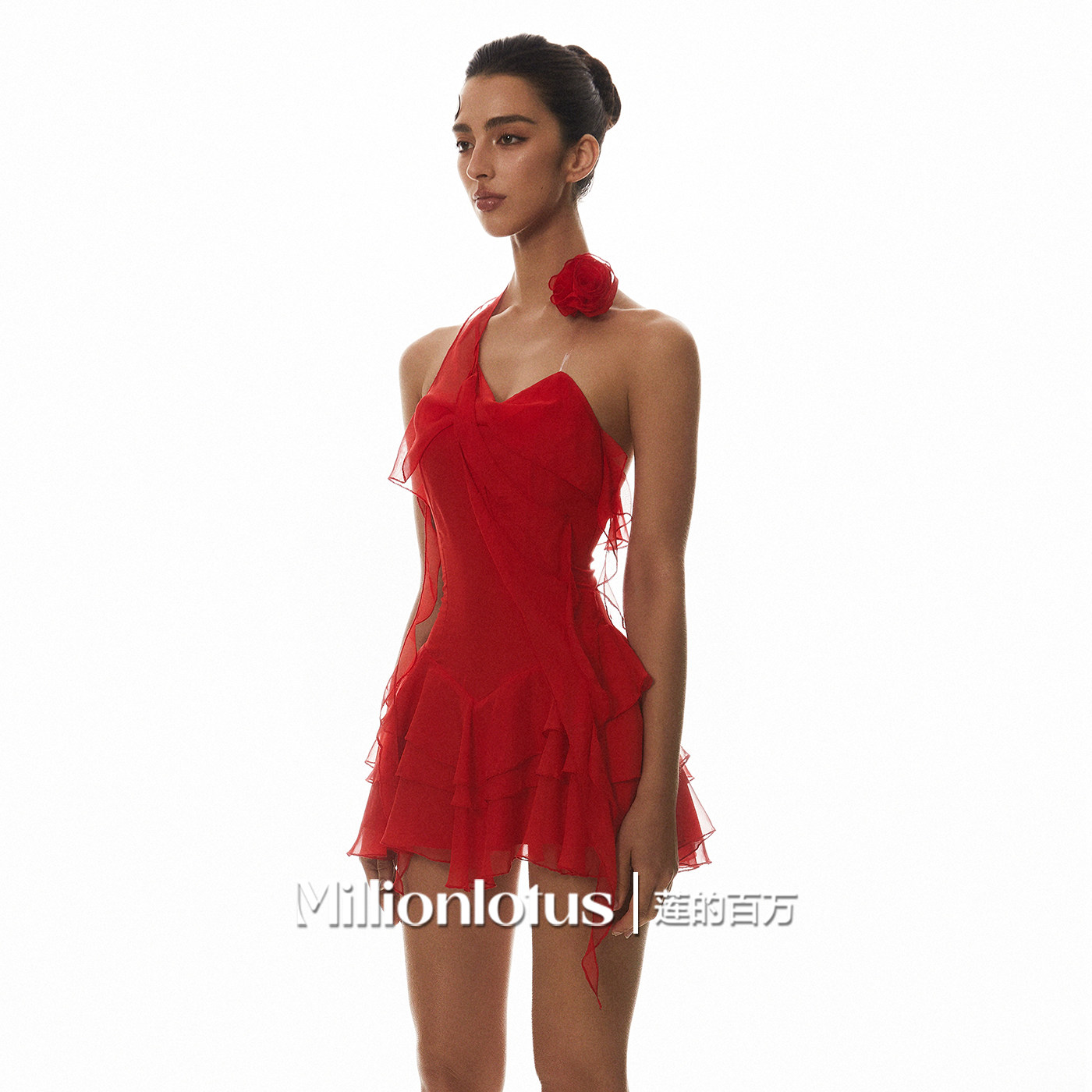 📚 莲的百万 飘逸红色玫瑰多层热情设计感连衣裙