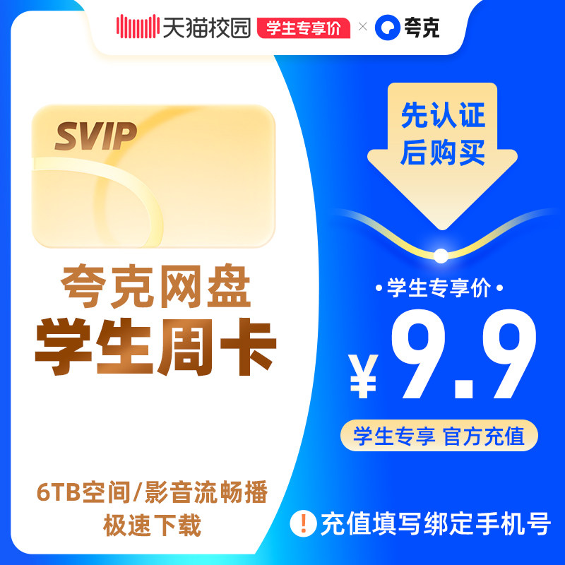 📚 【学生专享】夸克网盘SVIP超级会员7天周卡浏览器云收藏周卡