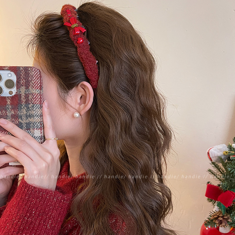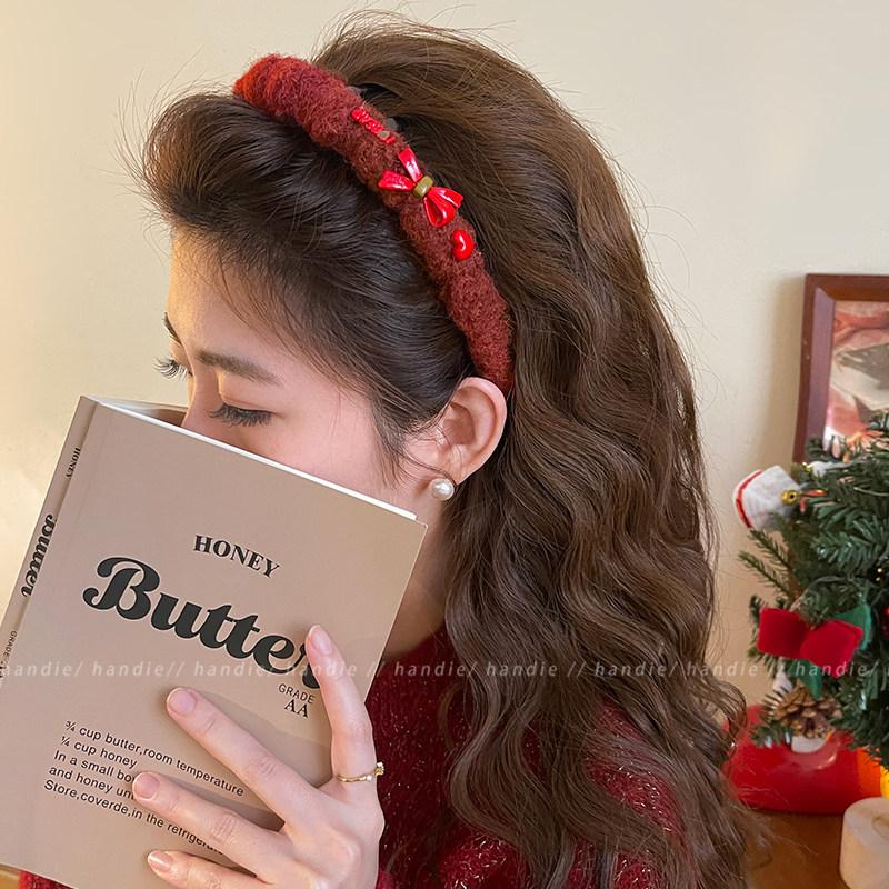 📚 新年红~毛绒发箍带齿蝴蝶结洗脸头箍女高颅顶2025新洋气时尚发卡