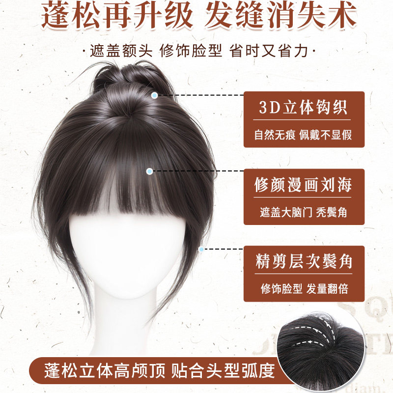 📚 漫画刘海假发女片头顶补发增发量蓬松高颅顶自然前额齐刘海假刘海