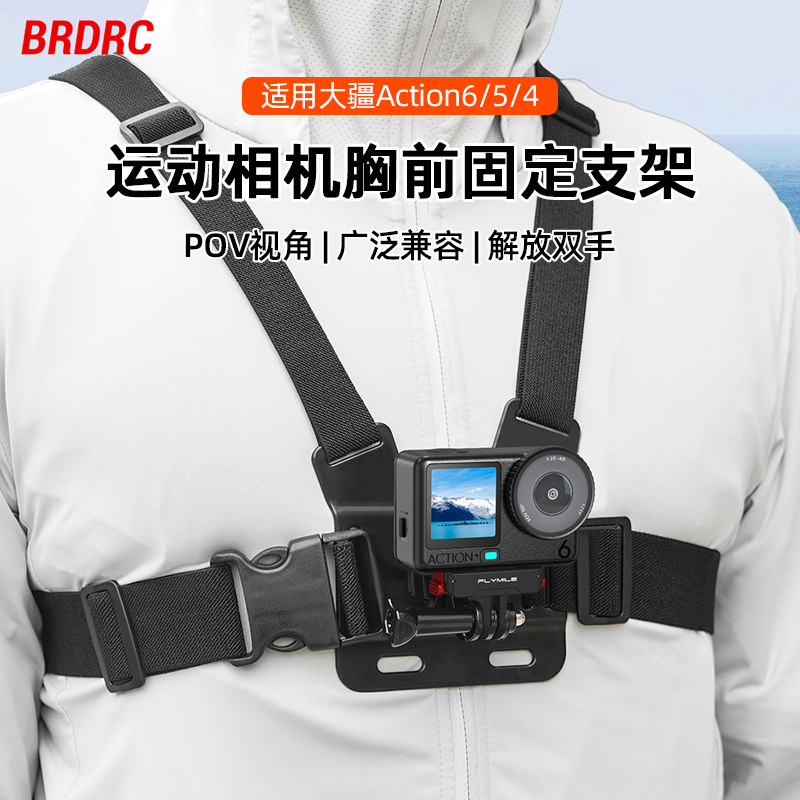 📚 Flymile适用大疆action6运动相机胸带Osmo Action5Pro/4第一人像视角拍摄胸前固定支架户外骑行支架运动配件