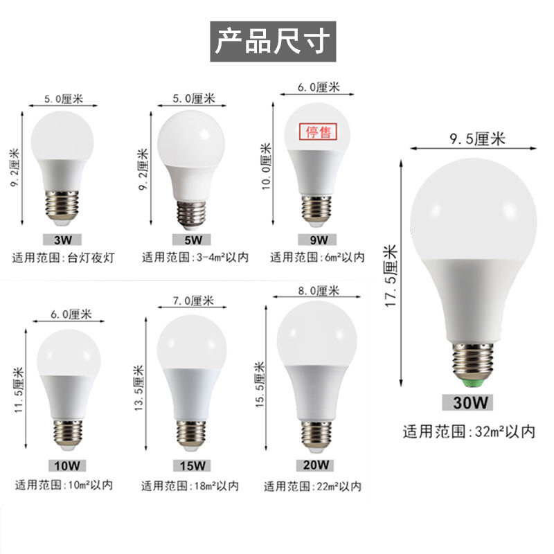 📚 三浦超亮无频闪护眼LED球泡节能灯泡省电3W5w10W20W30W白光暖光