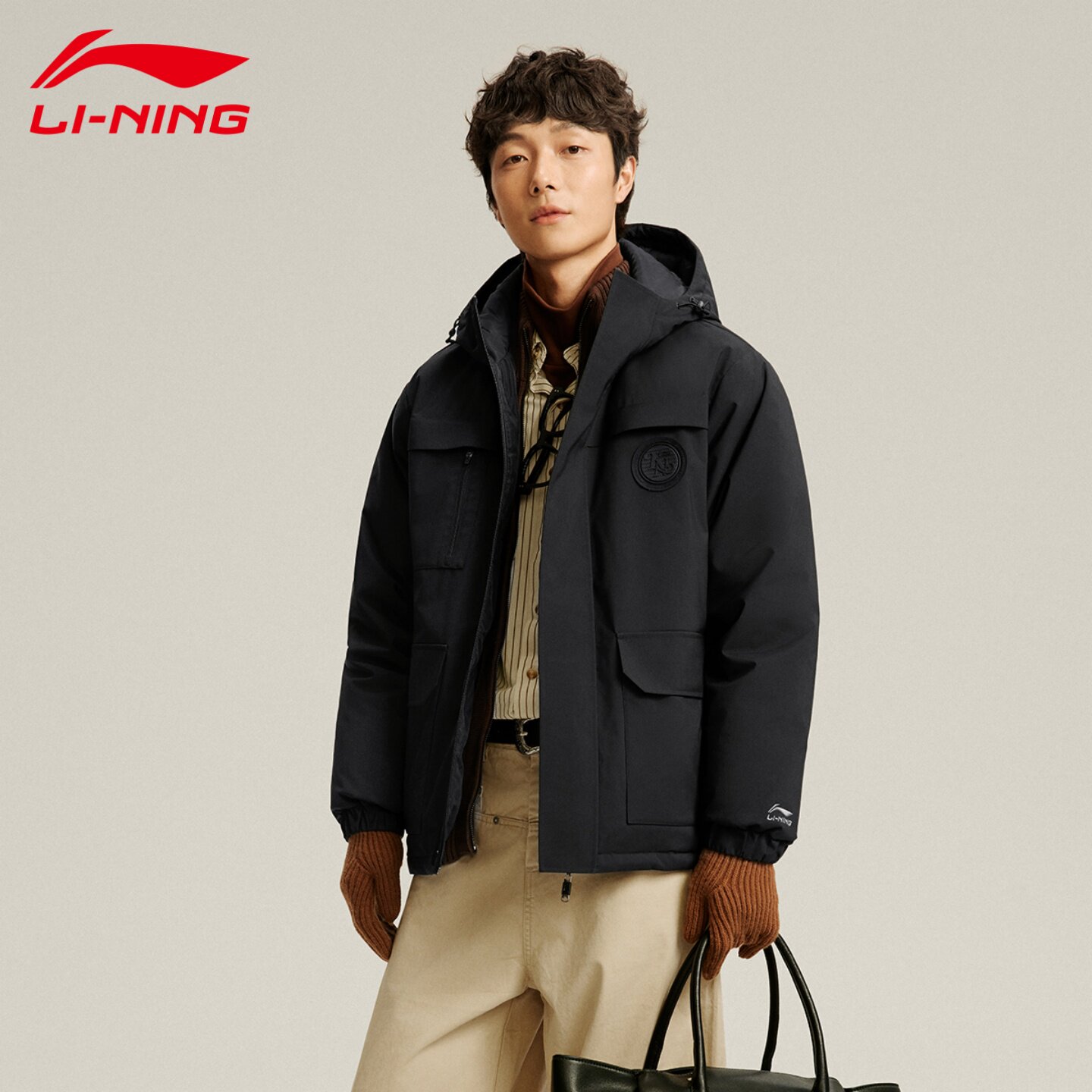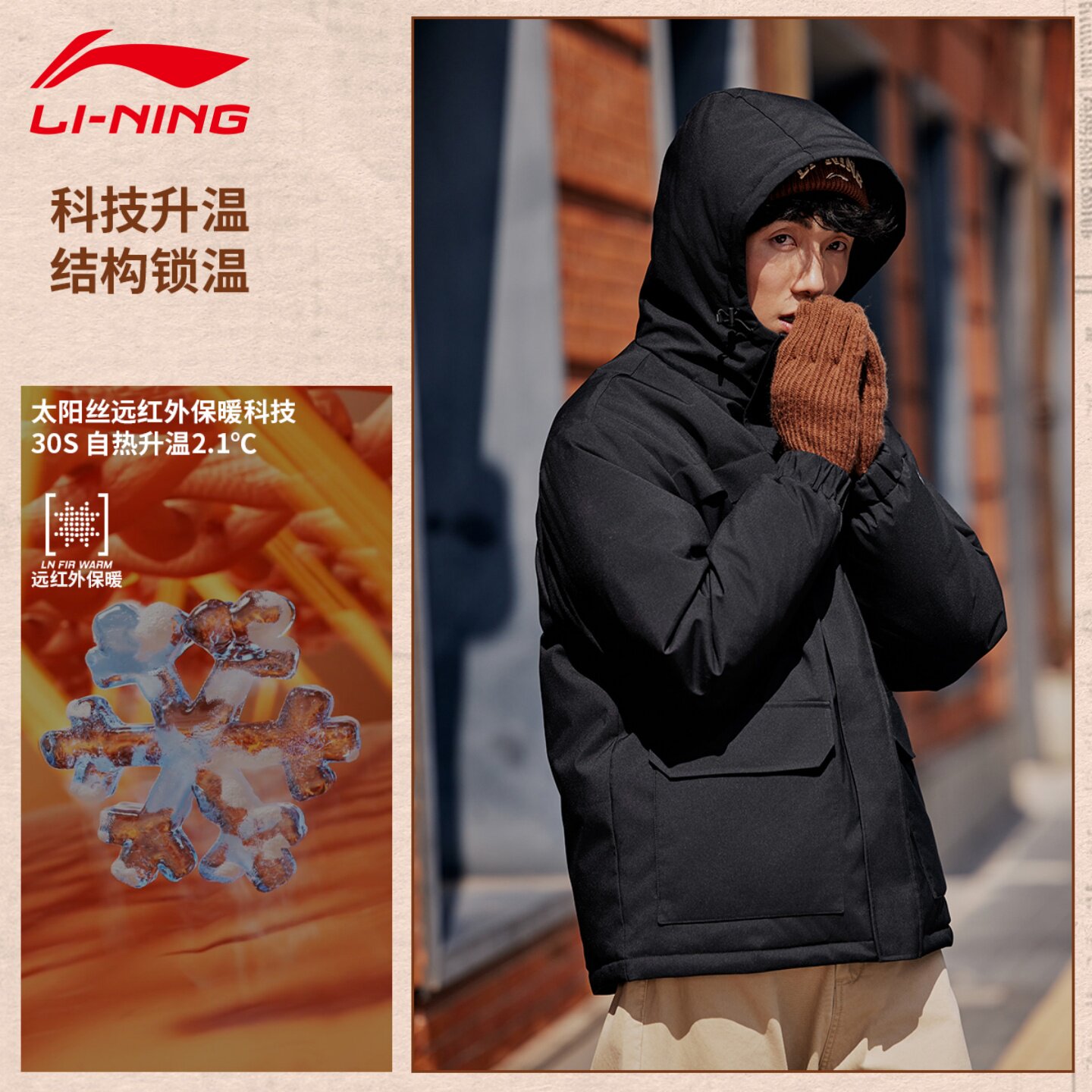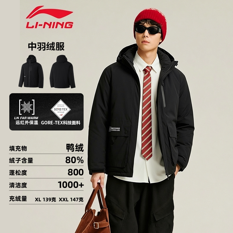 📚 李宁男款羽绒服冬2026新款航天动态保暖连帽衣服短款工装运动外套