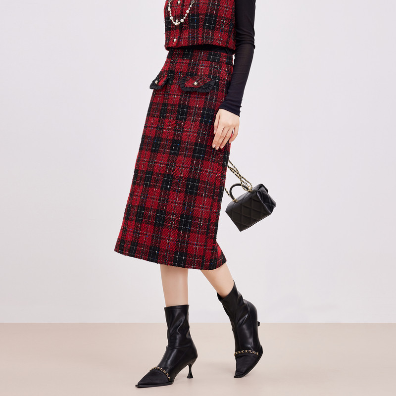 📚 鲁思蒂小香风格子半身裙2024新款女春秋气质时尚高腰显瘦中长裙子
