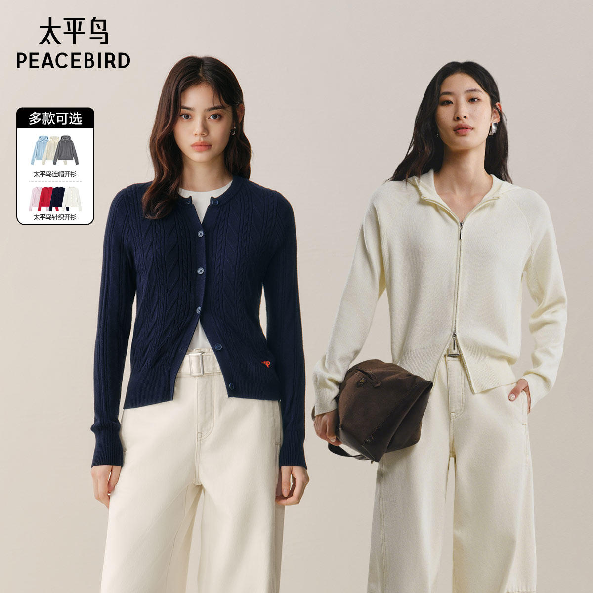 📚 【达播专属】太平鸟混纺针织开衫连帽双拉链开衫