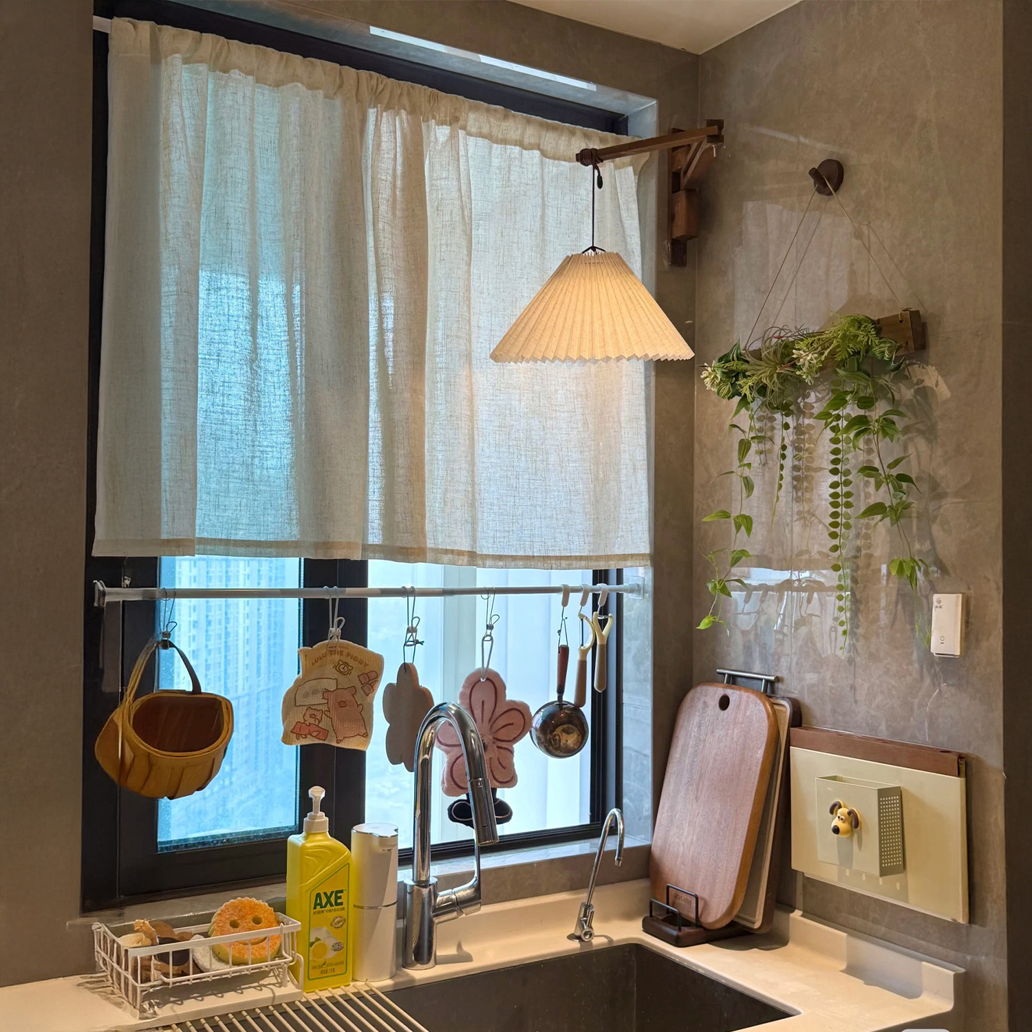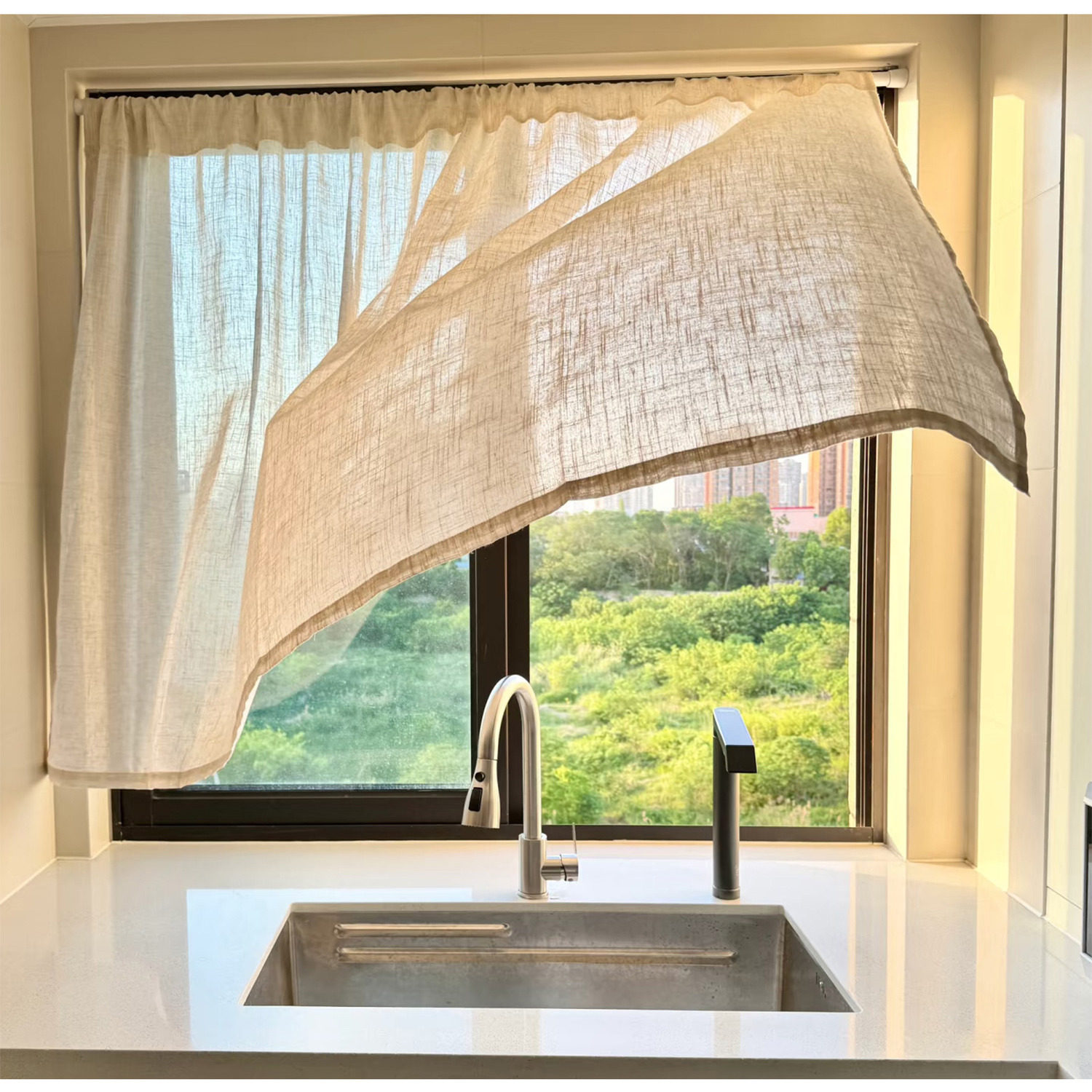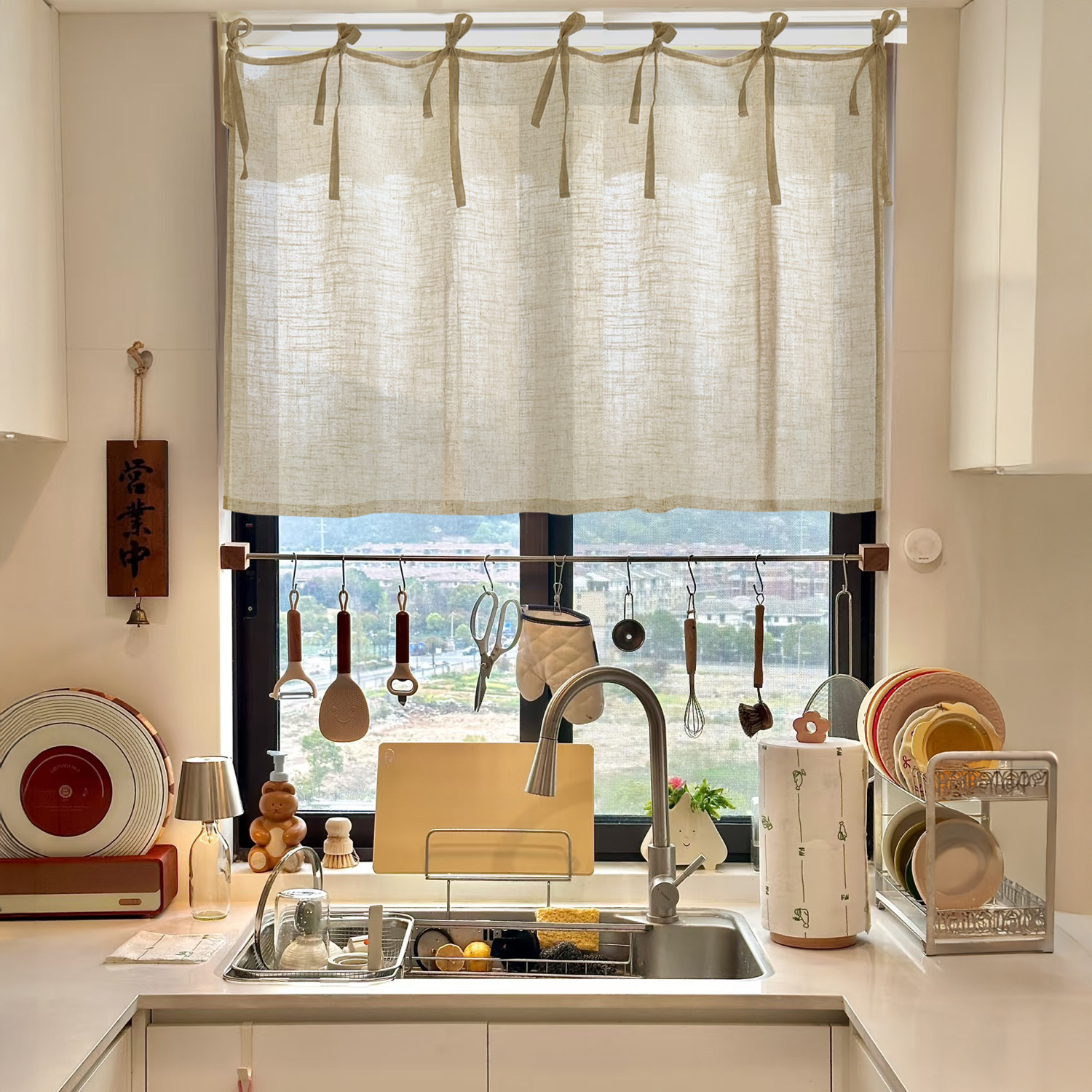📚 厨房飘窗半遮窗帘 亚麻棉麻半截式 透光不透人 遮挡帘免打孔穿杆