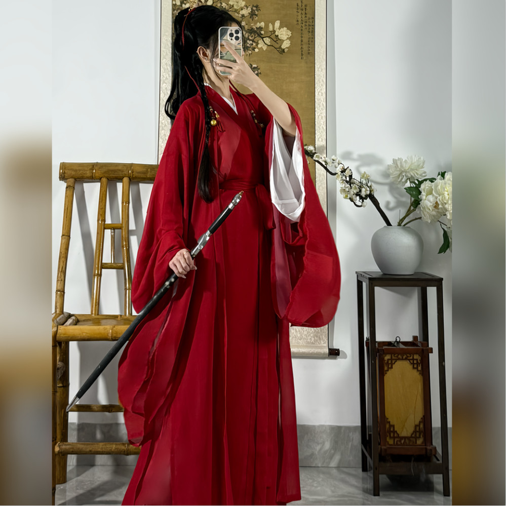 📚 原创汉服女侠客春秋魏晋武侠风cos剑舞帅气纯红色白色黑色飘逸仙