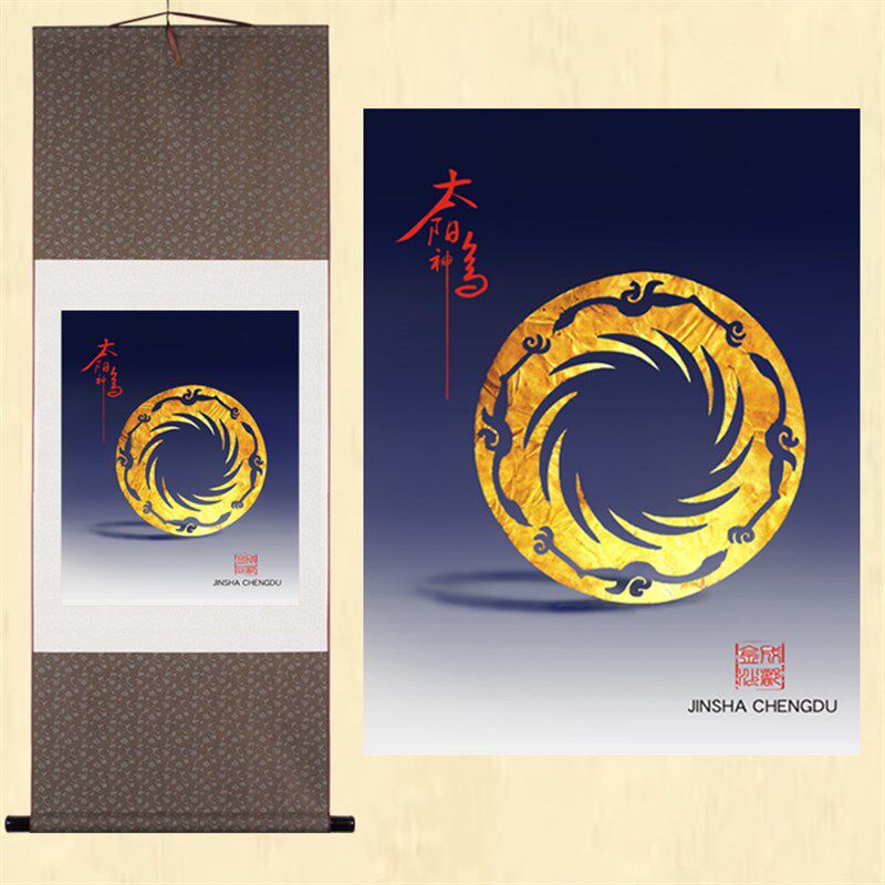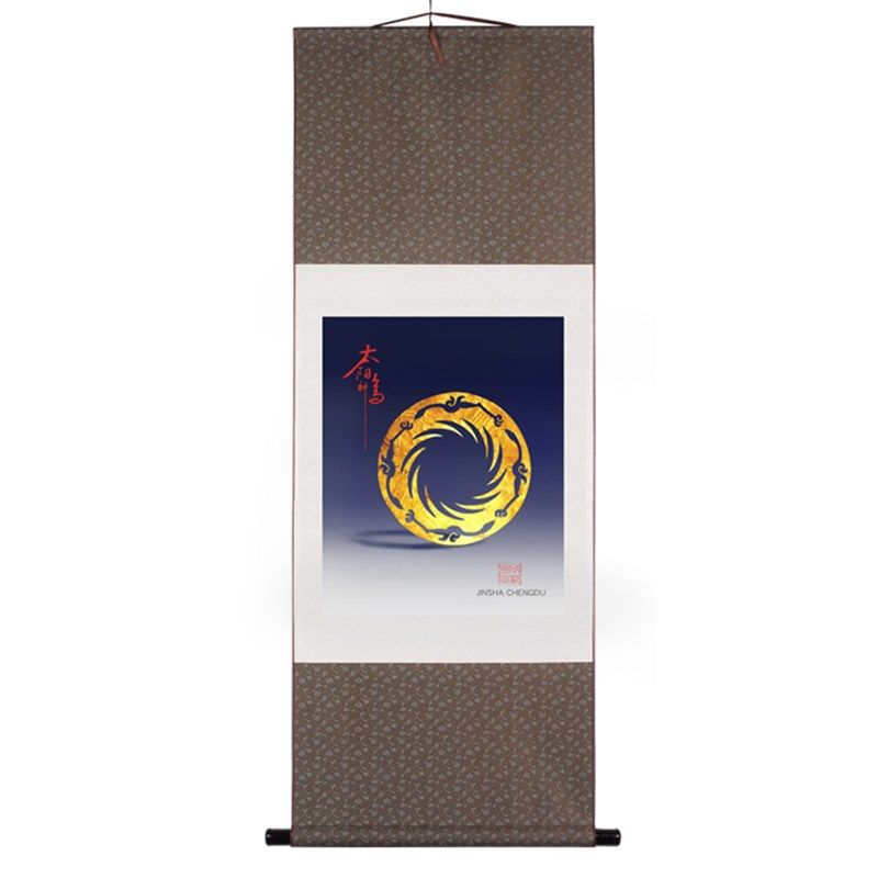📚 蜀锦蜀绣国风礼物太阳神鸟四川特色刺绣手客厅卷轴挂画送礼