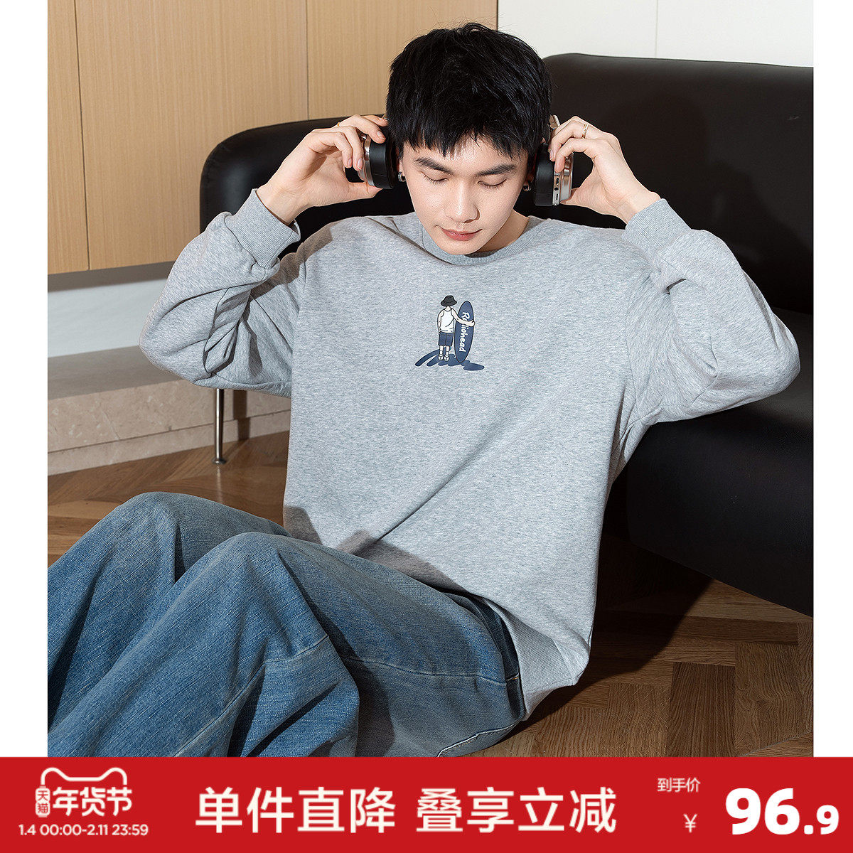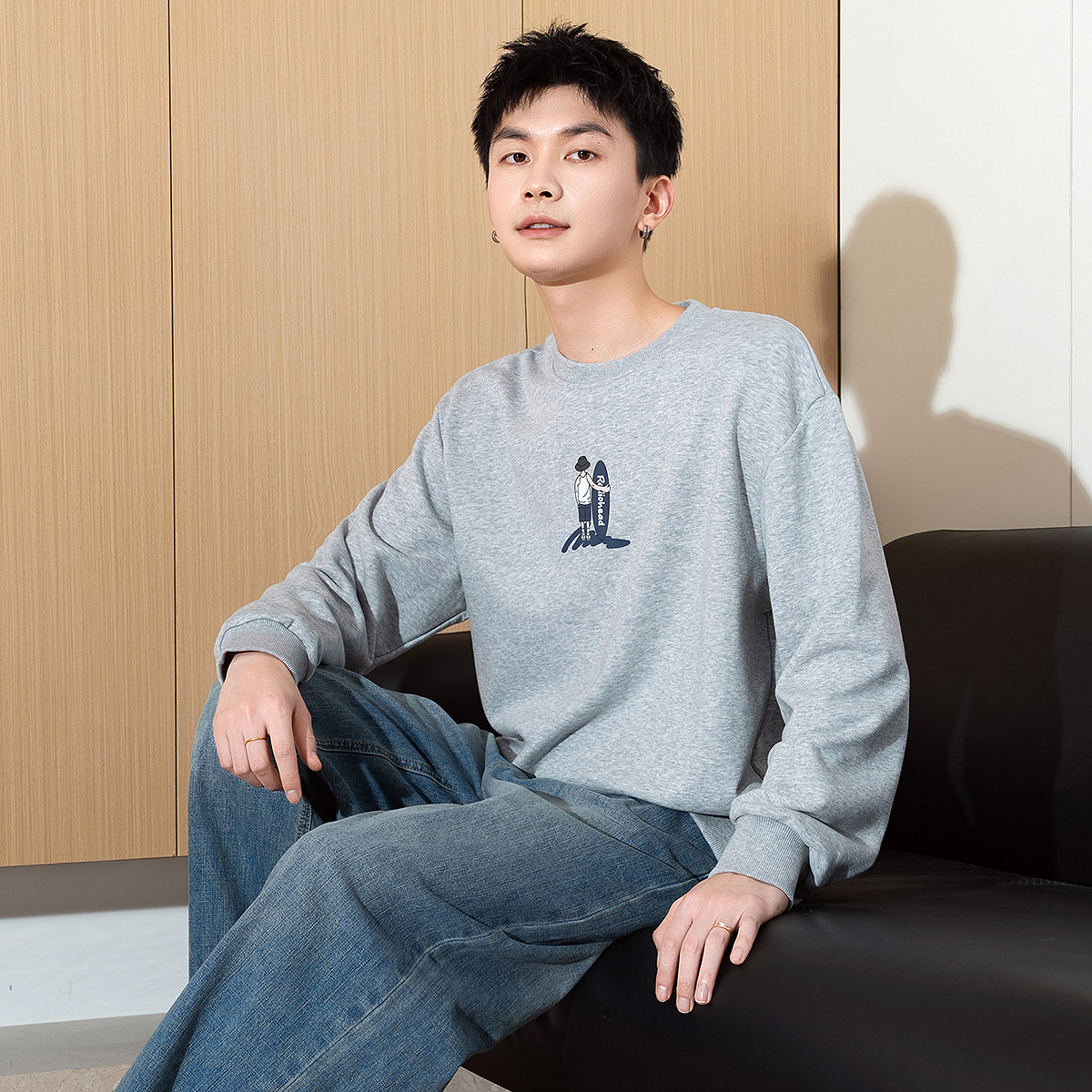 📚 Radiohead春季新款圆领卫衣男灰色宽松印花百搭上衣潮牌大码