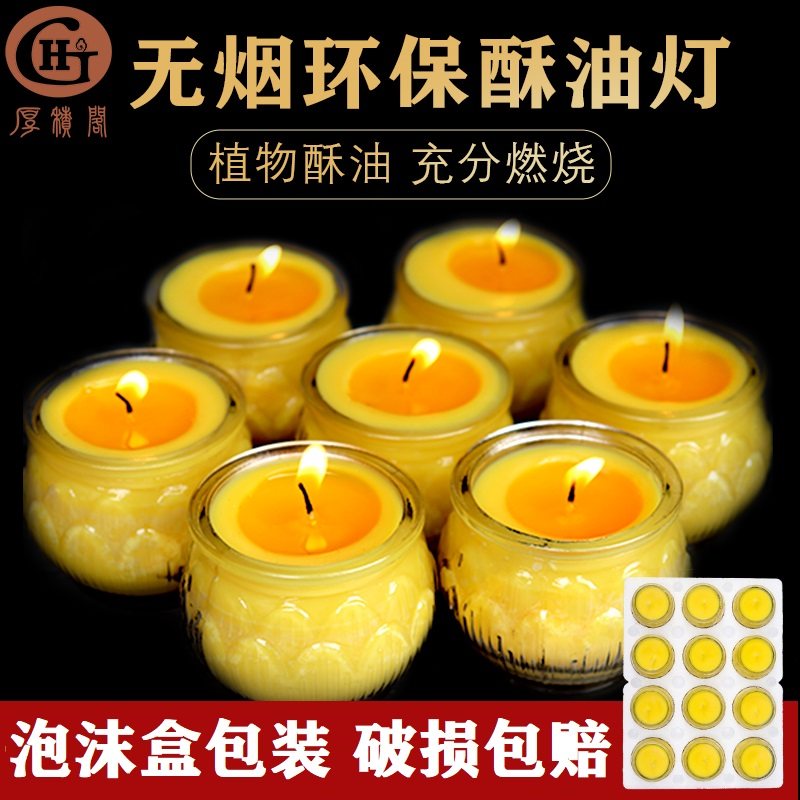 📚 新厚积阁酥油灯24小时供佛灯平口C莲花植物家用长明灯无烟供佛蜡