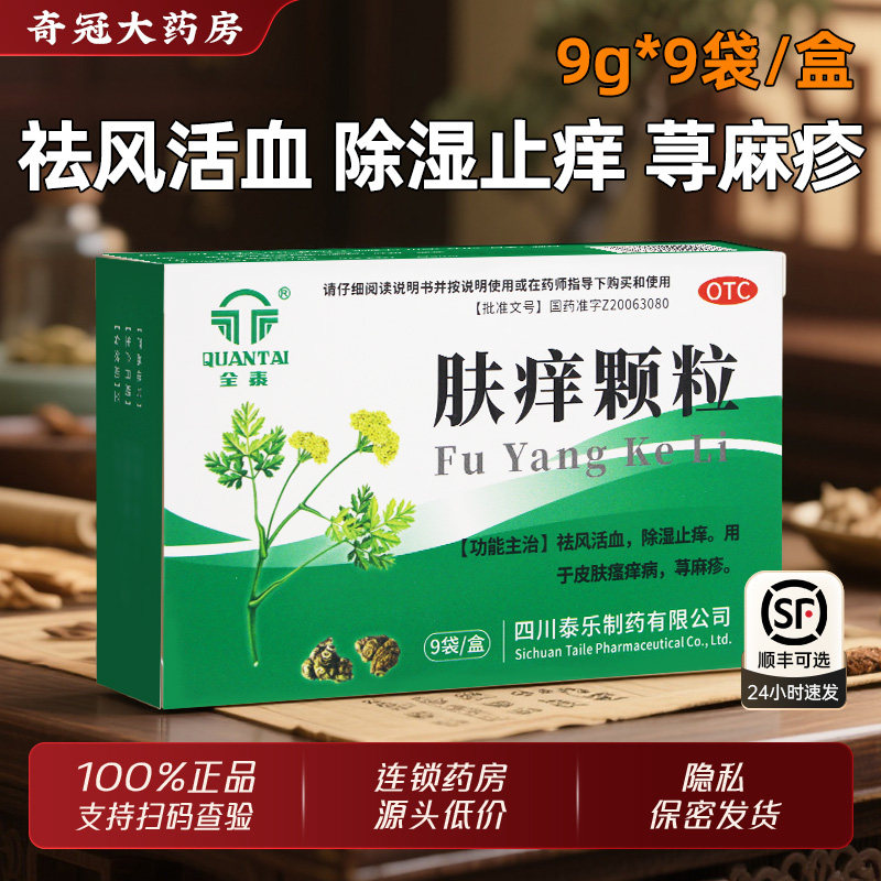 📚 全泰肤痒颗粒9袋正品止痒皮肤瘙痒荨麻疹口服药祛风活血除湿止痒