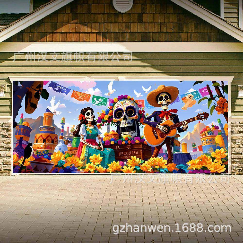 📚 库头旗墨哥亡灵节活动背景布置彩色车74514骷颅图案新西款