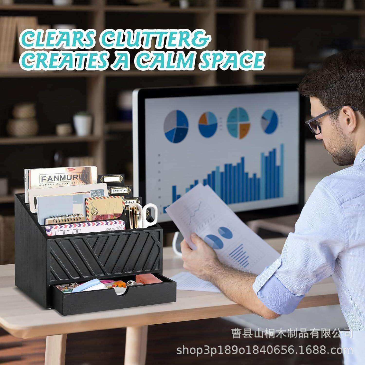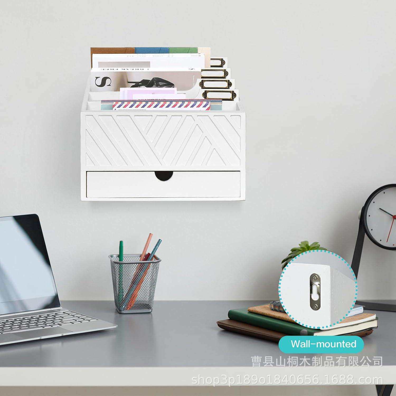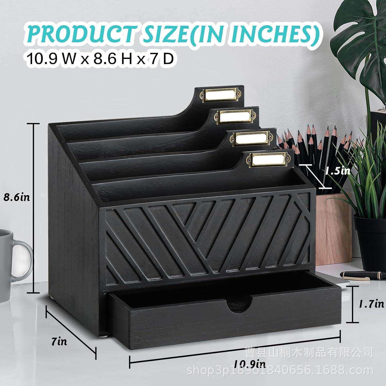 📚 现货桌面文件夹收纳盒 办公室邮件存储木盒带抽屉桌面收纳整理盒