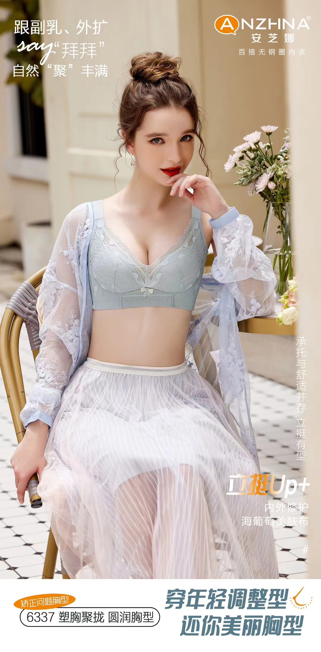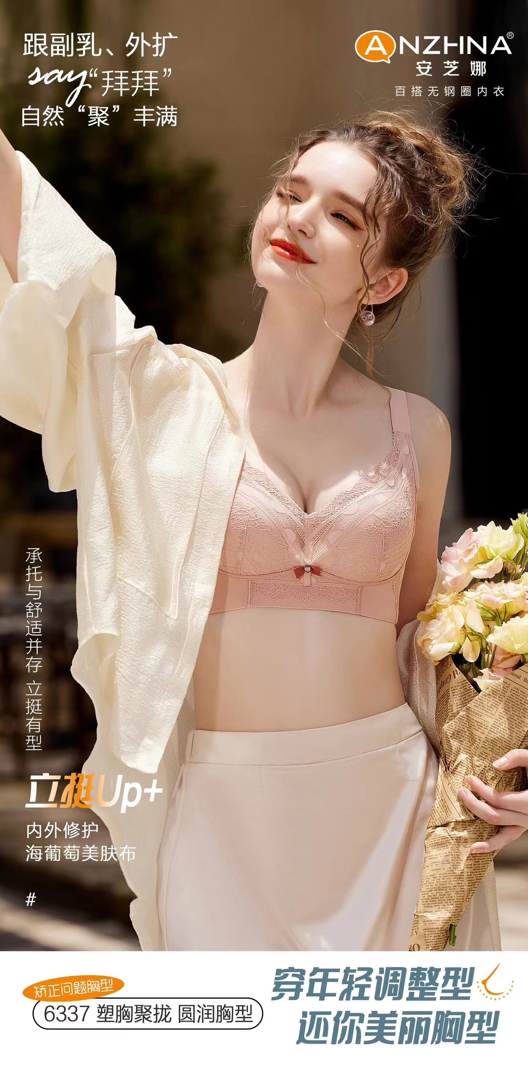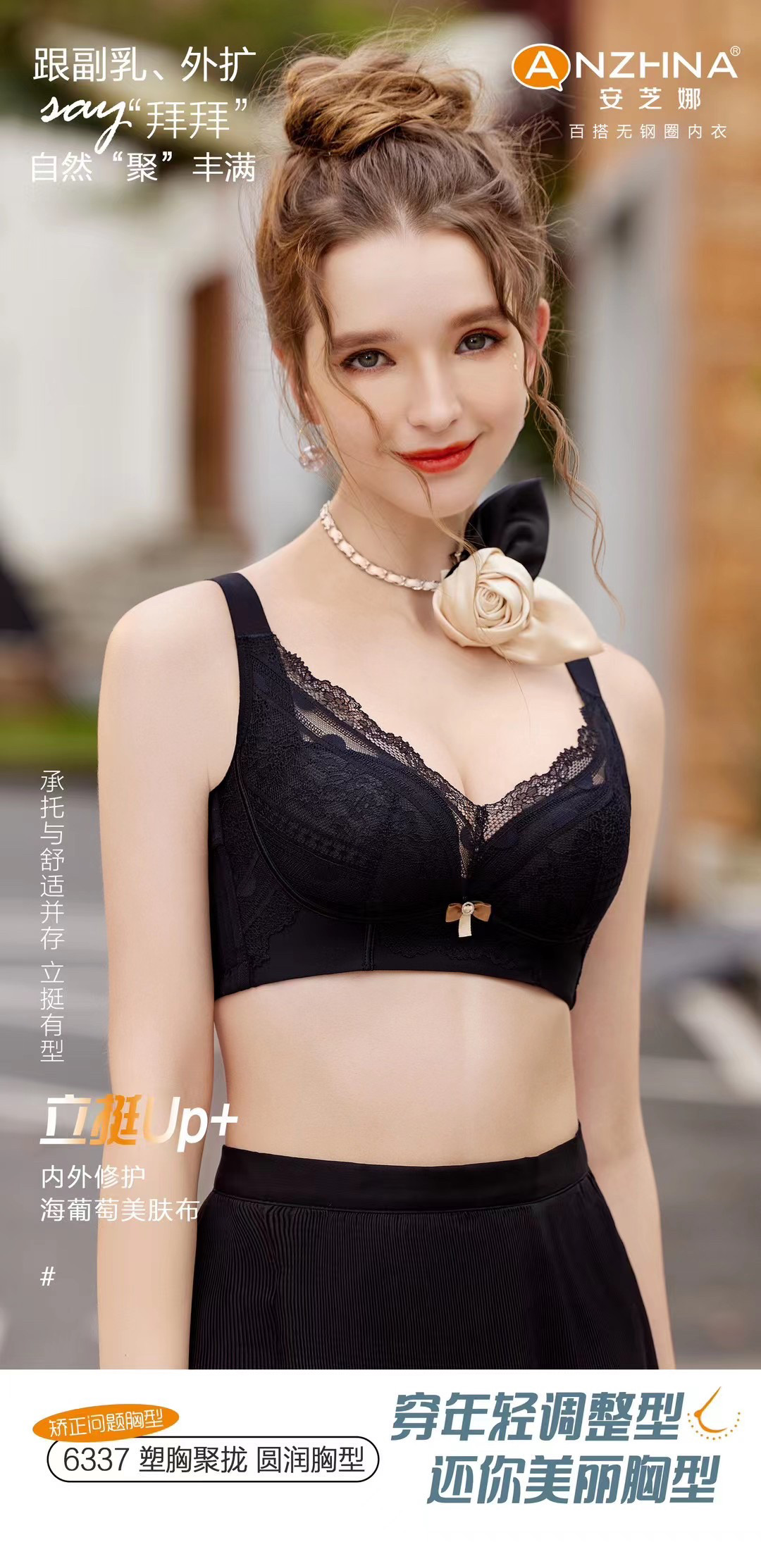 📚 安芝娜6337B杯无钢圈中厚B杯内衣聚拢收副乳调整型蕾丝舒适文胸