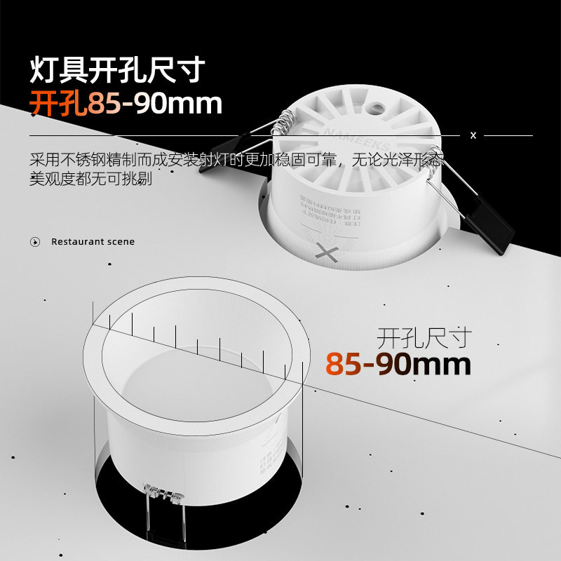 📚 新款防眩筒灯嵌入式85mm9cm9公分开孔洞灯家用客厅吊顶12w孔灯