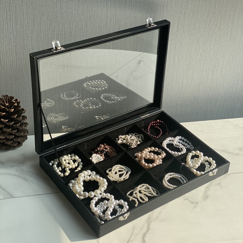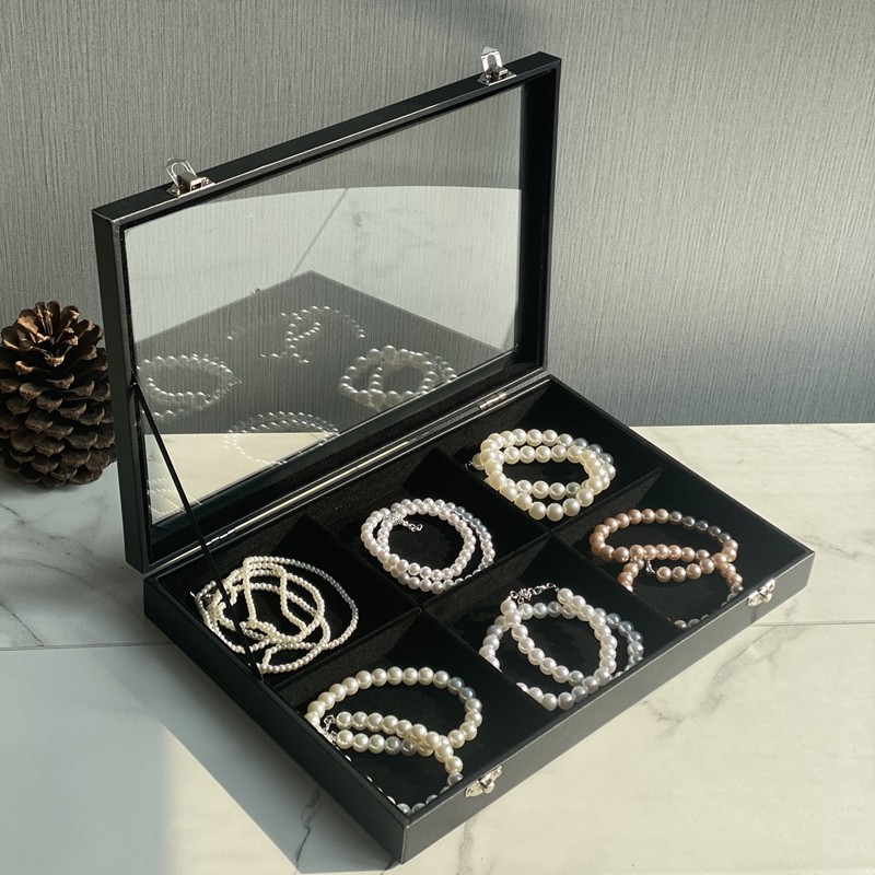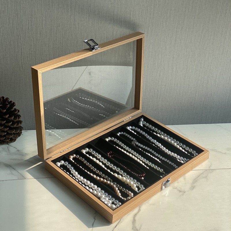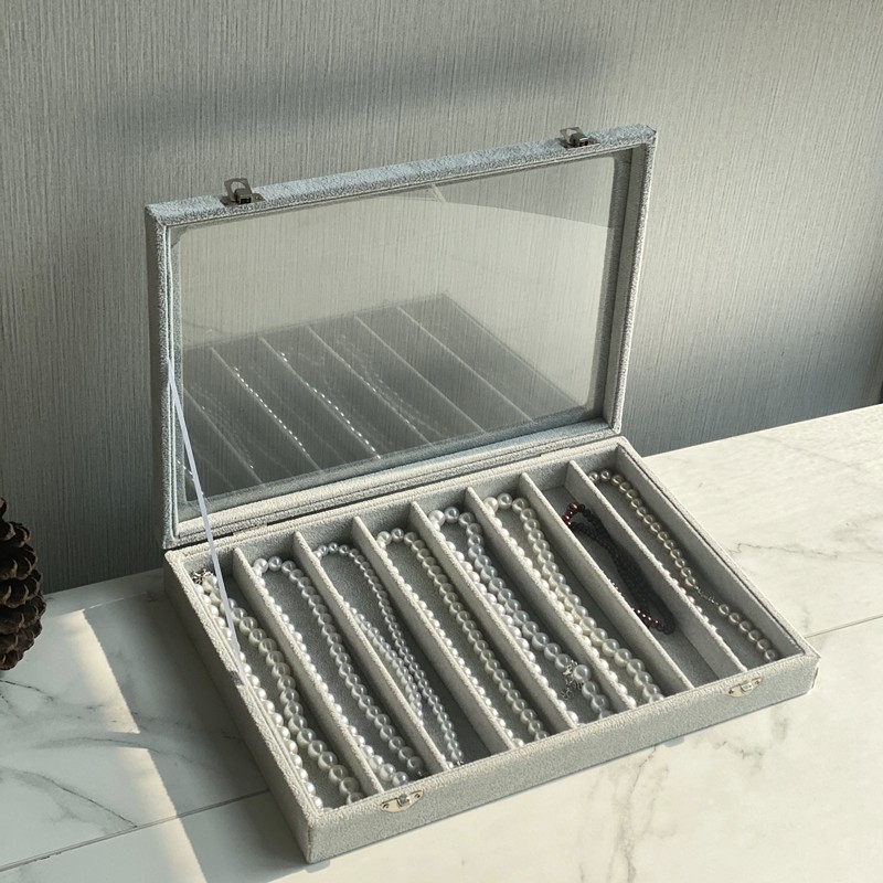 📚 放珍珠项链收纳盒带盖玻璃防尘长手链珠子饰品粗颈链首饰盒看货盘