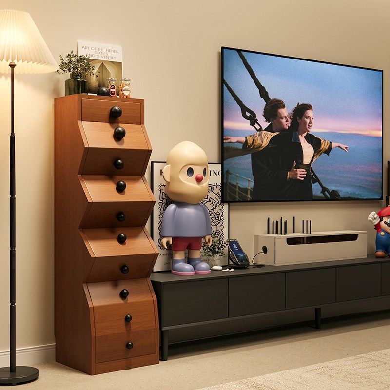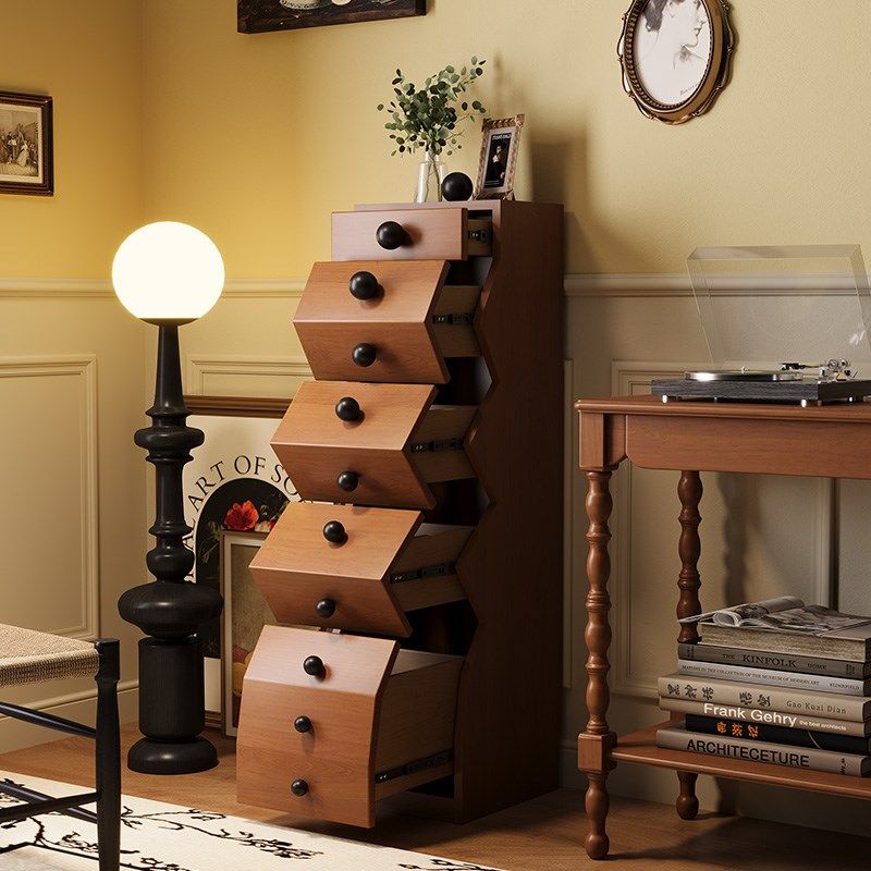 📚 白色斗柜中古风五斗柜复古风收纳柜客厅靠前小边柜实木储物柜子