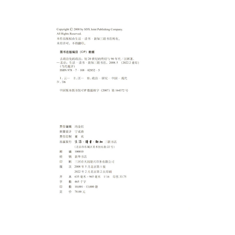 📚 去政治化的政治汪晖中国政治生活.读书.新知三联书店新华书店正版