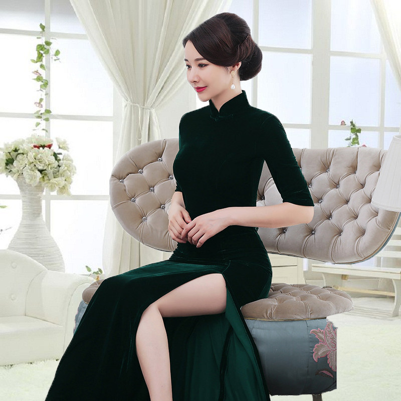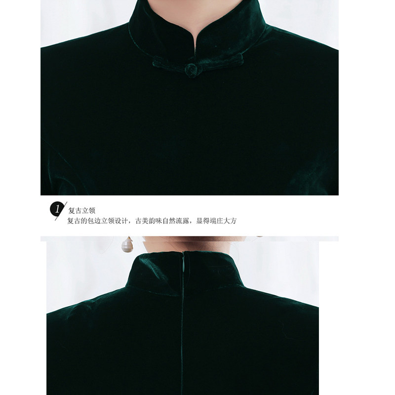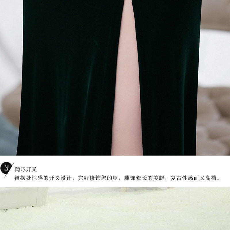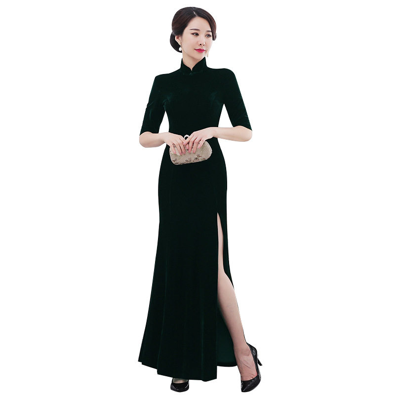📚 金丝绒旗袍中袖长款秋冬中年女妈妈高端弹力修身气质改良版鱼尾裙