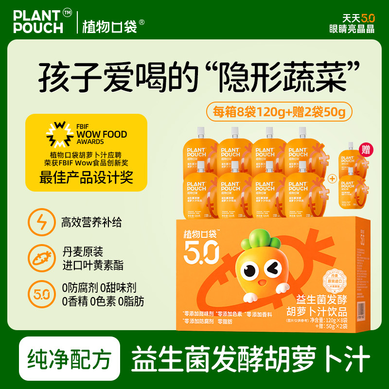 📚 植物口袋5.0胡萝卜汁益生菌发酵果蔬汁儿童早餐健康饮品饮料袋装A