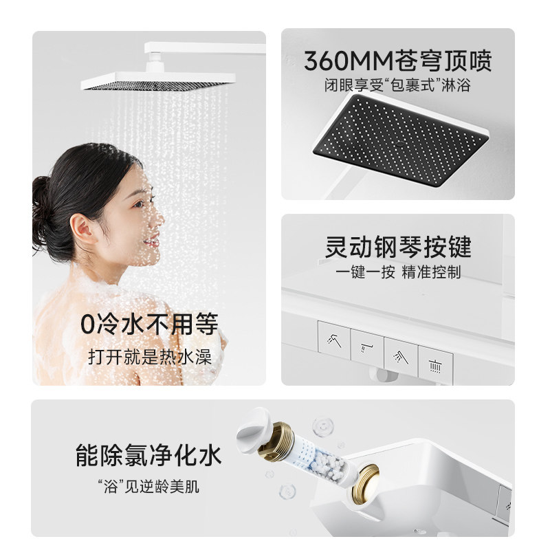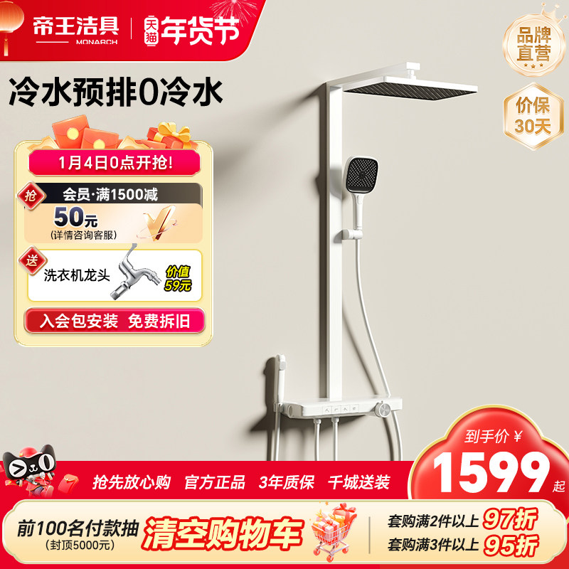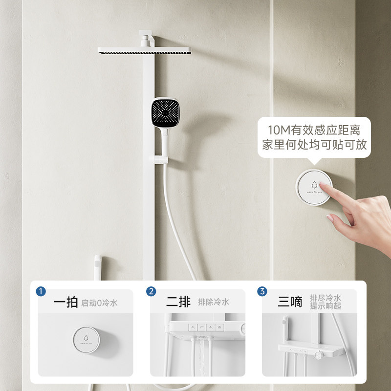 📚 帝王洁具淋浴恒温花洒奶油风白色智能数显0冷水家用套装增压花洒