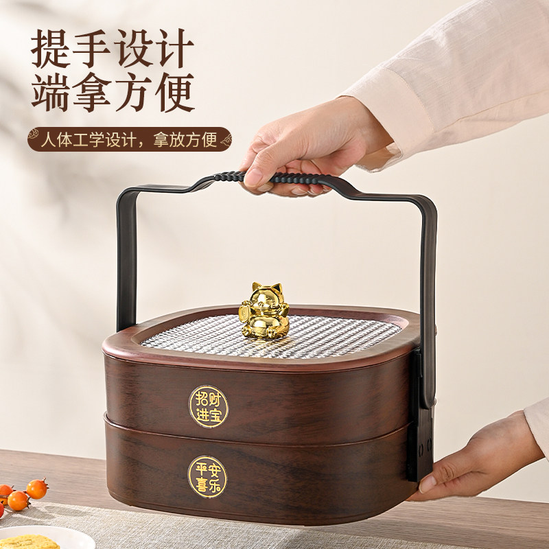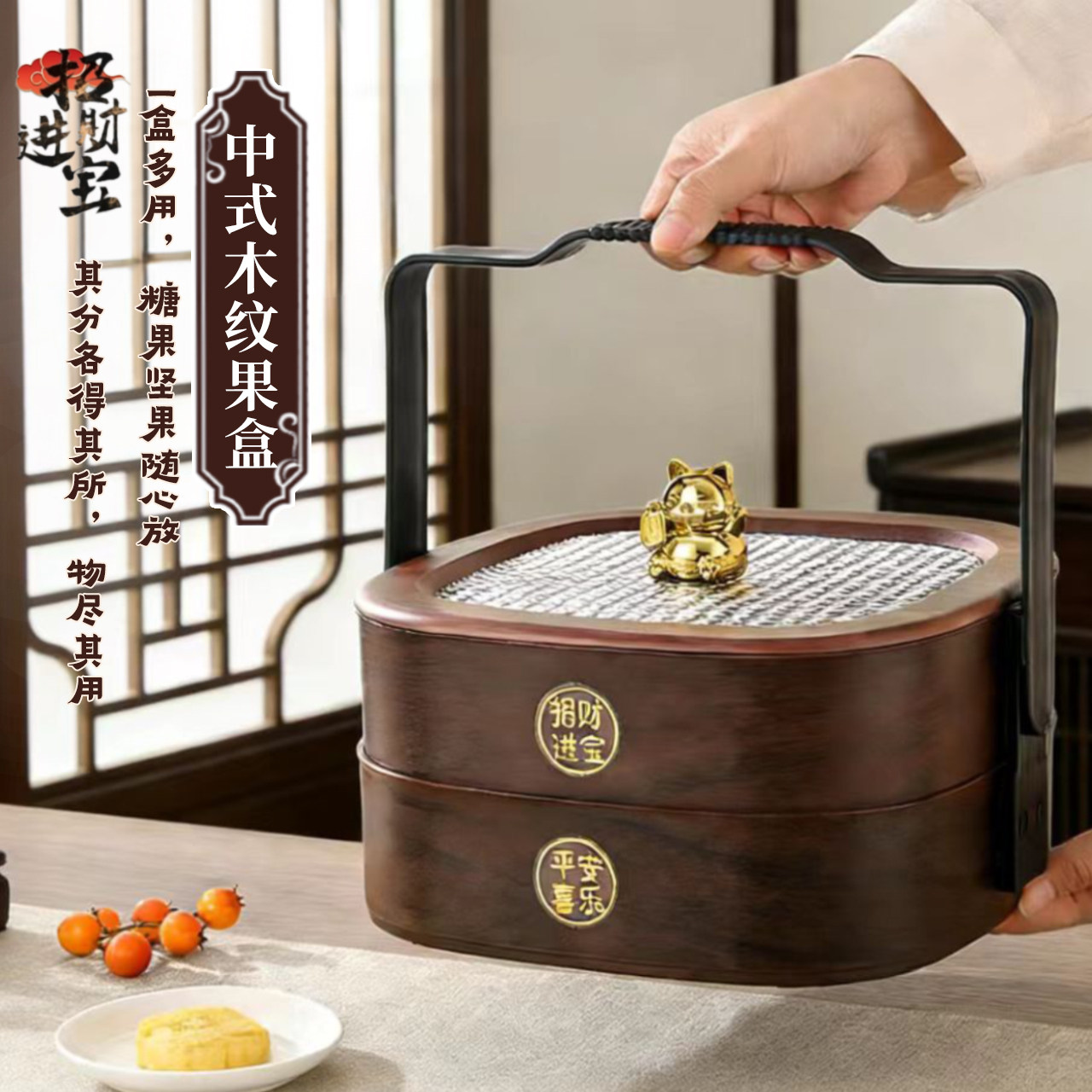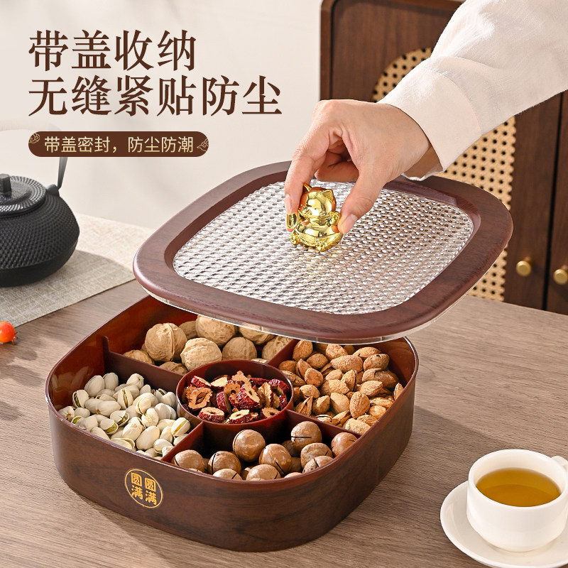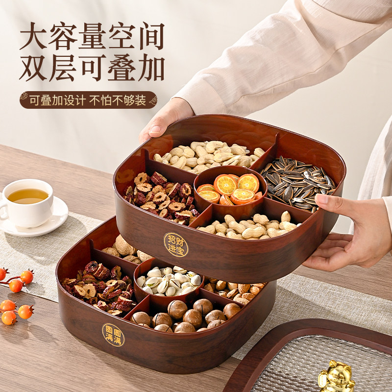 📚 中式木纹糖果盒家用2026新款多层手提收纳盒客厅茶几零食摆放盘